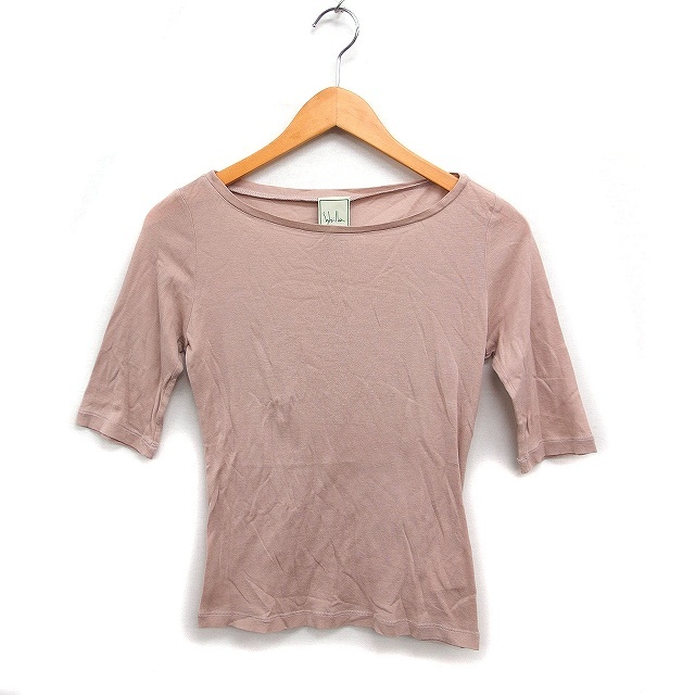 シビラ SYBILLA ニット カットソー 5分袖 ボートネック 無地 コットン 綿 M ベージュ /FT26 レディース