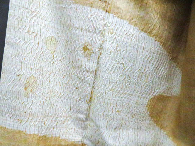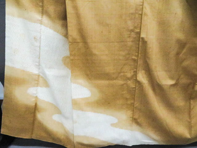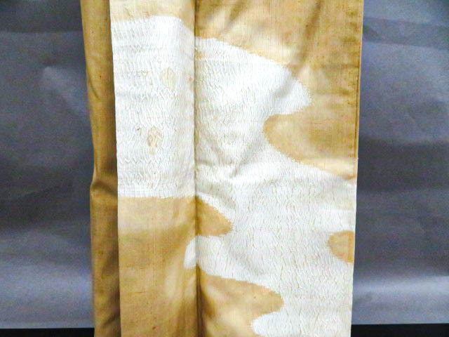 リサイクル商品のため、所々シミ、保管臭がございますがご使用頂けると存じます。 地色は薄茶です。 1枚目の画像が近いお色かと思われます。 素材は正絹です。 |