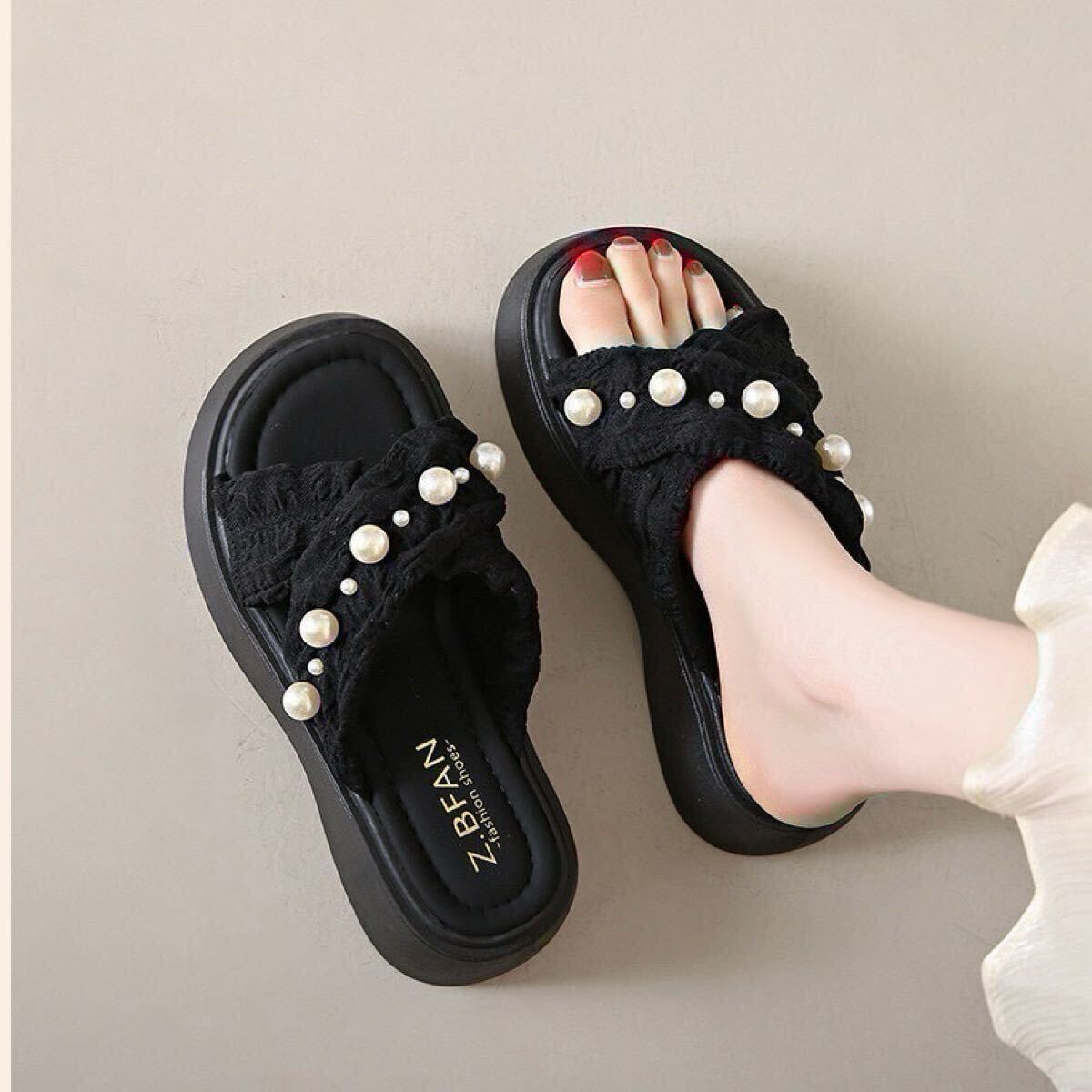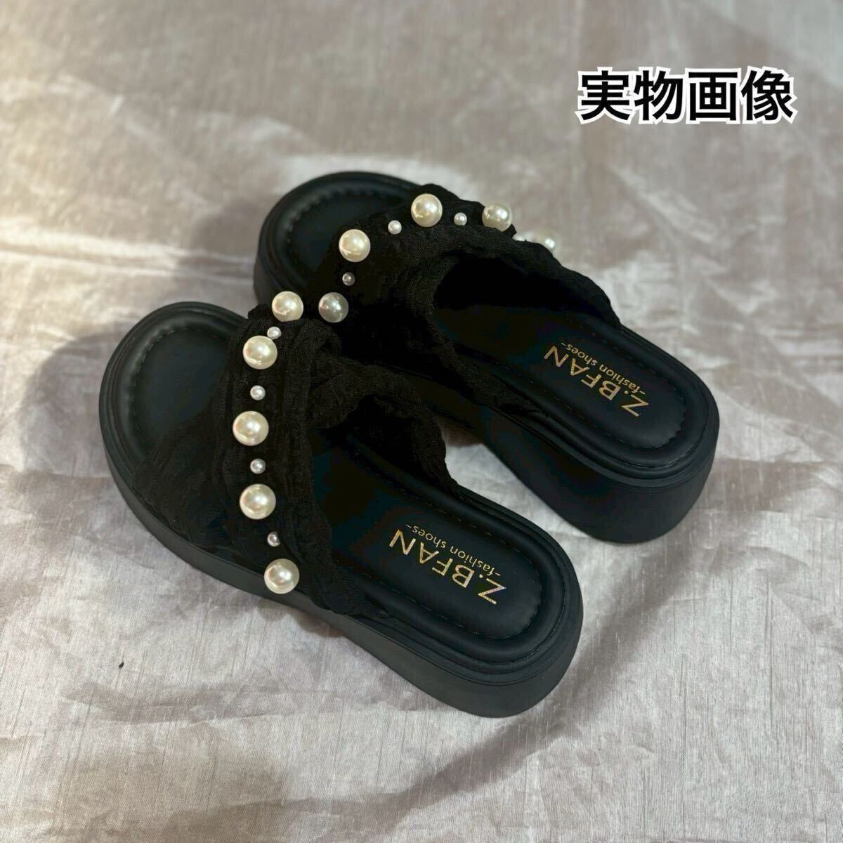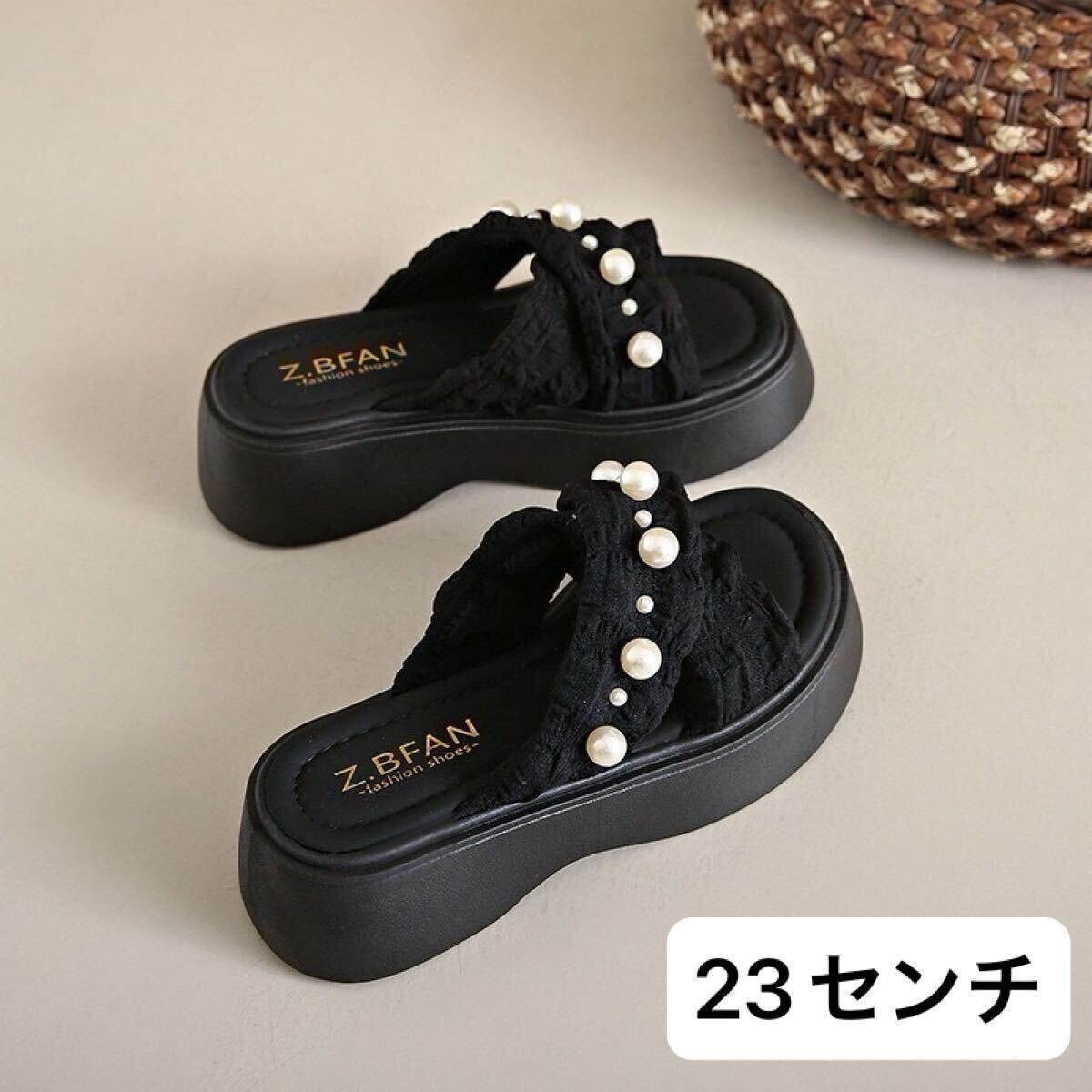 レディース サンダル クロスベルト 厚底サンダル スリッパ フラット パール 23cm