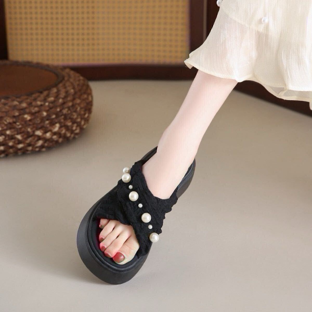 甲ベルトに大きめのパールが飾られ、可愛くておしゃれ度満点のサンダル♪