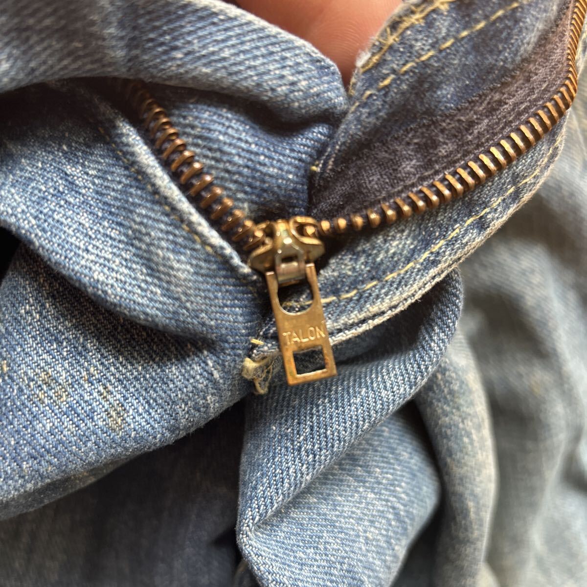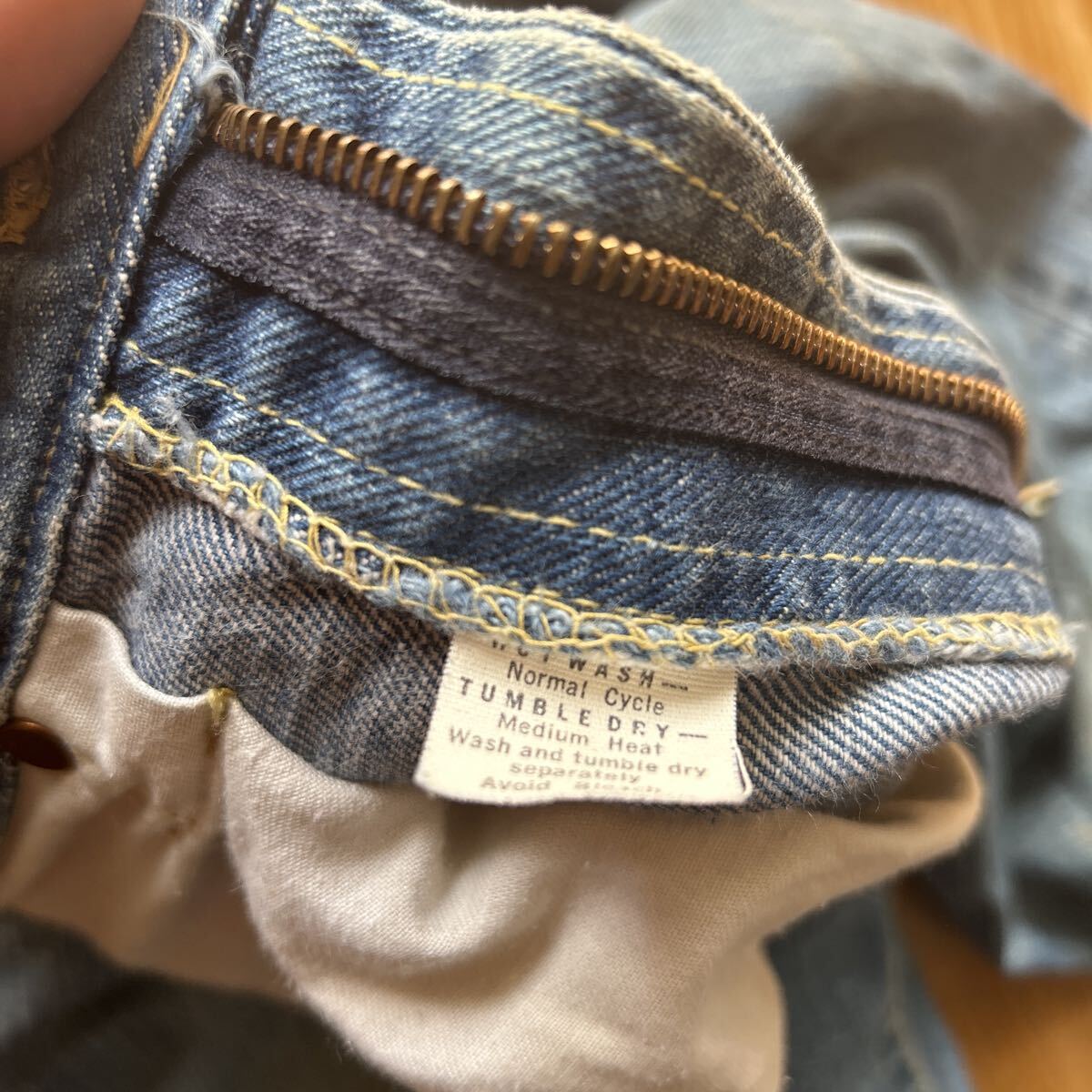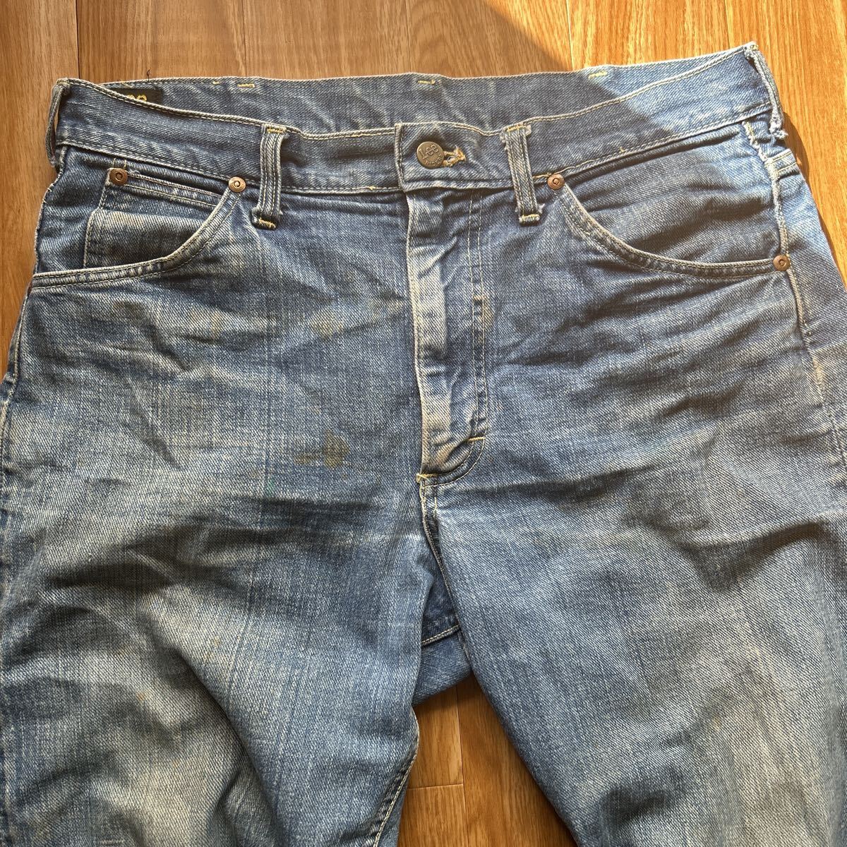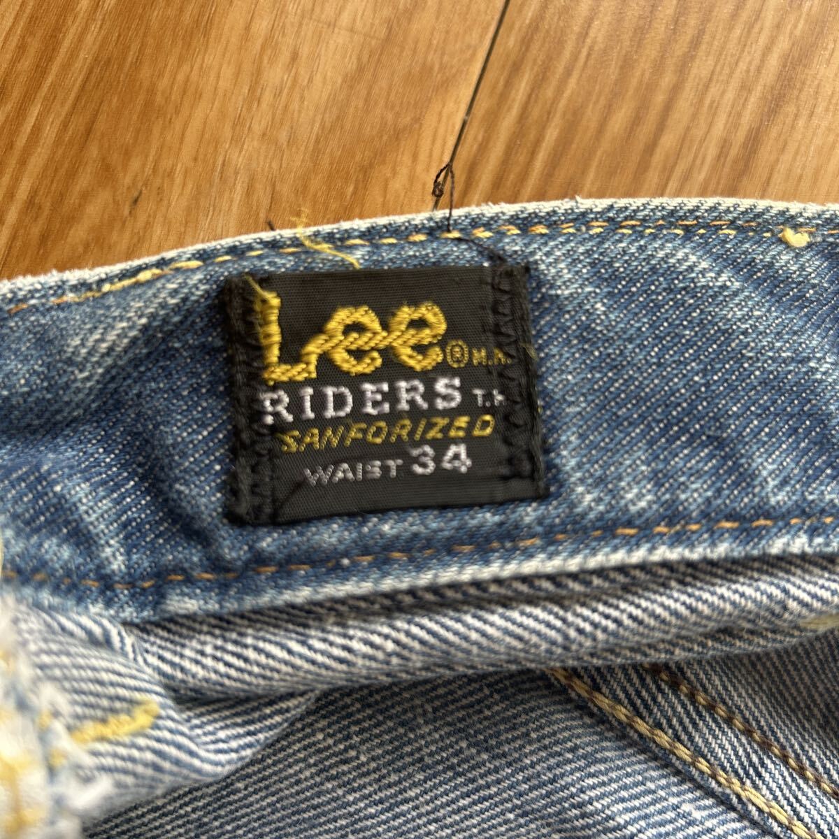 Lee Riders タロンジップ 黒タグです。左裾に油汚れ、全体にサビの跡が有りますが雰囲気のある一本です。ステッチはイエロー、綺麗な縦落ちで生地はまだ厚みがあります。