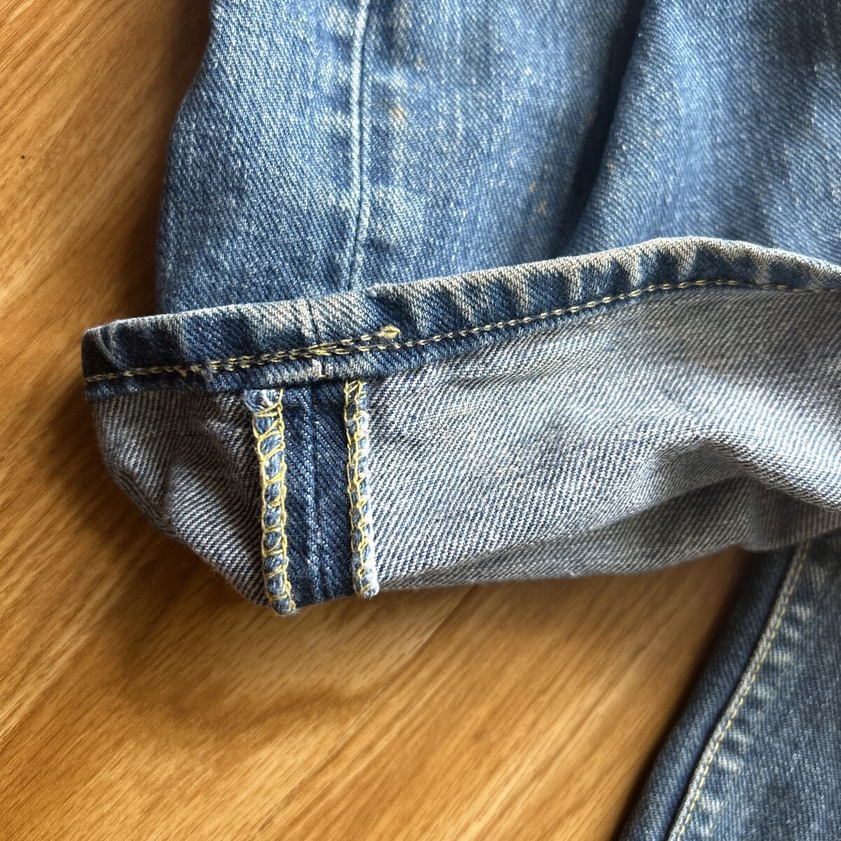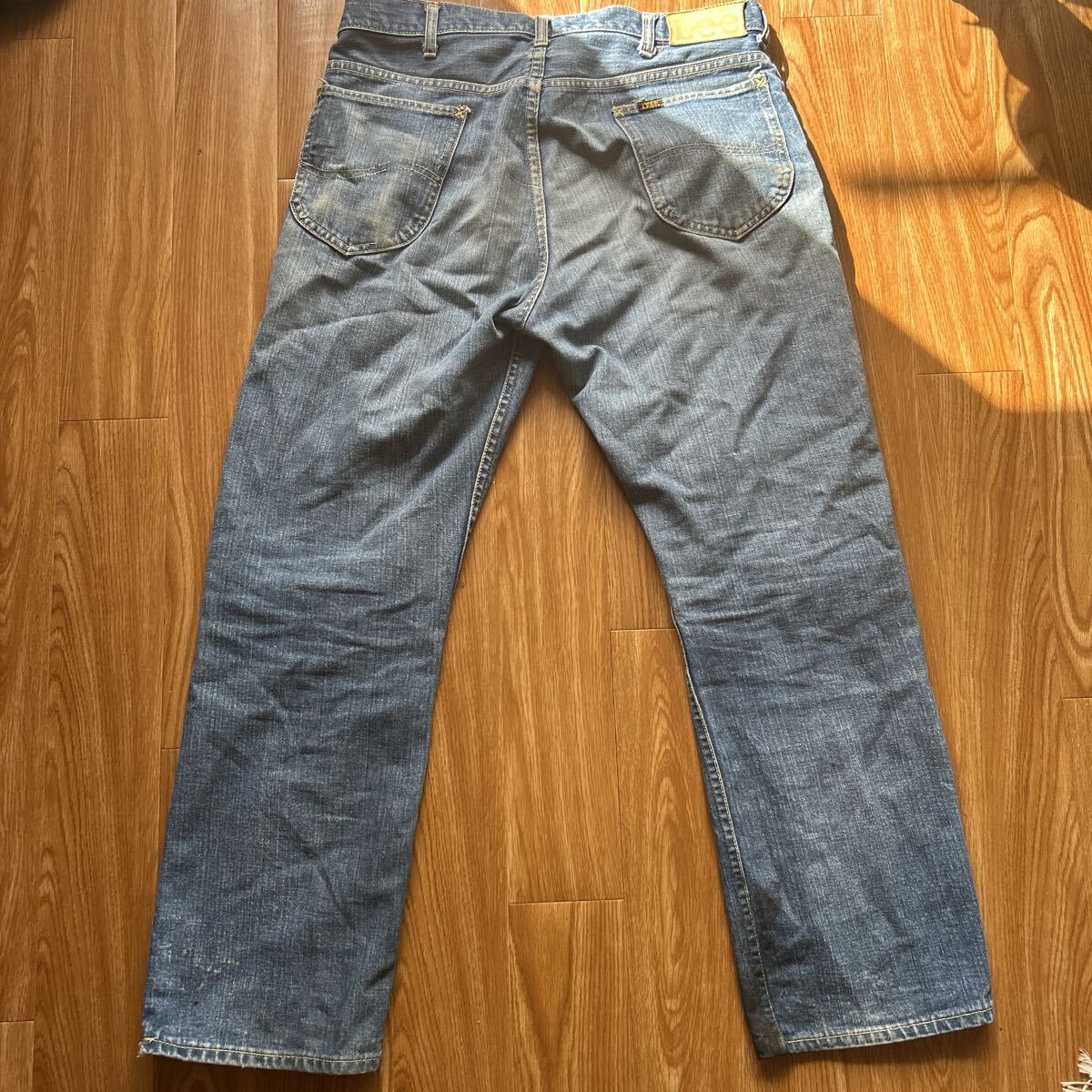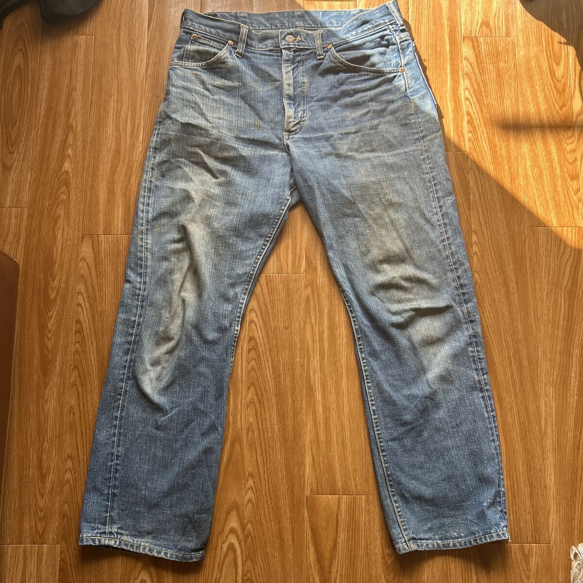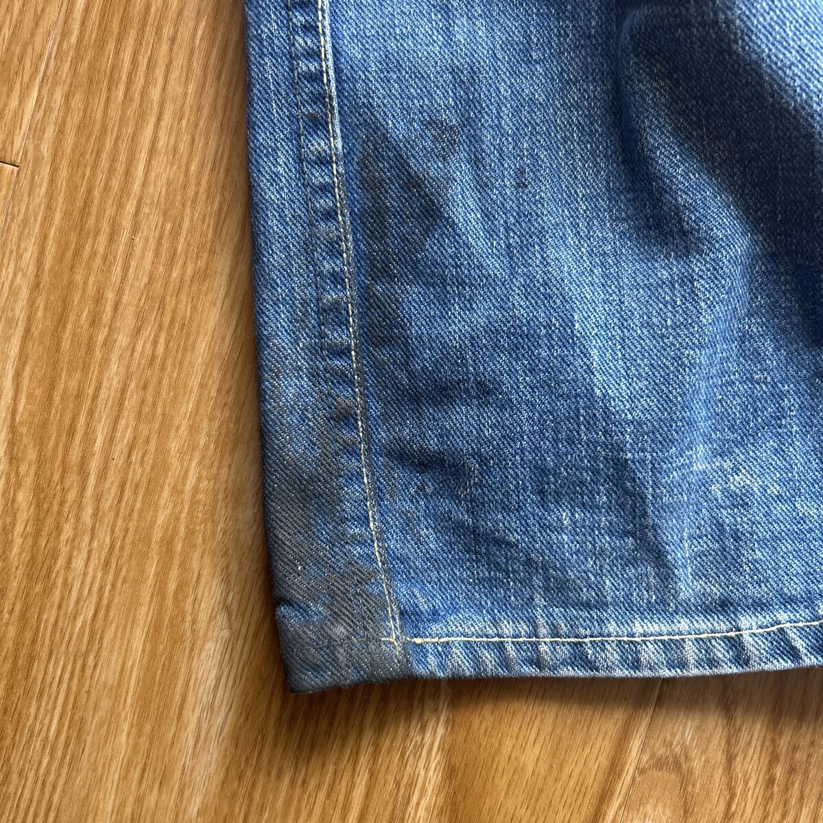 Lee Riders タロンジップ 黒タグです。左裾に油汚れ、全体にサビの跡が有りますが雰囲気のある一本です。ステッチはイエロー、綺麗な縦落ちで生地はまだ厚みがあります。
