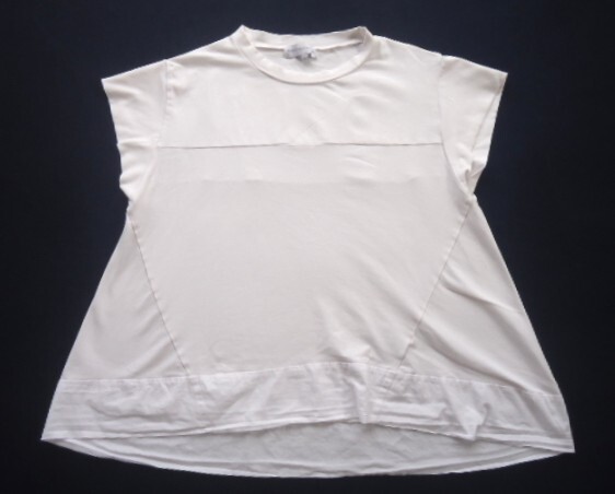 | 平置きサイズ(約):肩幅41.5cm,身幅48cm.前身丈57cm,袖丈9.5cm |