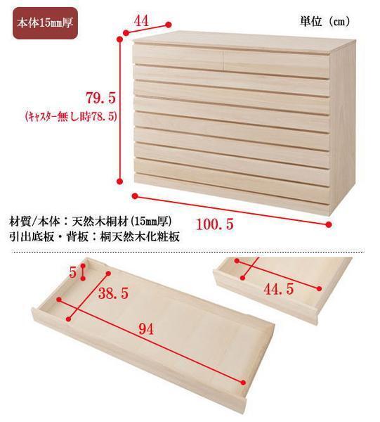 本体:天然木(桐材) 引出し底板・背板:天然木桐化粧板 本体15mm厚+天板は2重構造 耐荷重量/天板:約20kg 完成品(キャスタ-のみ取付) 国産品 | |