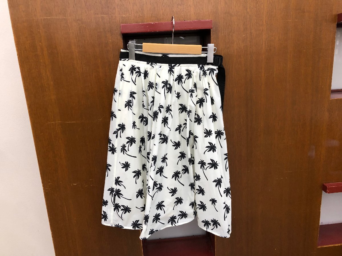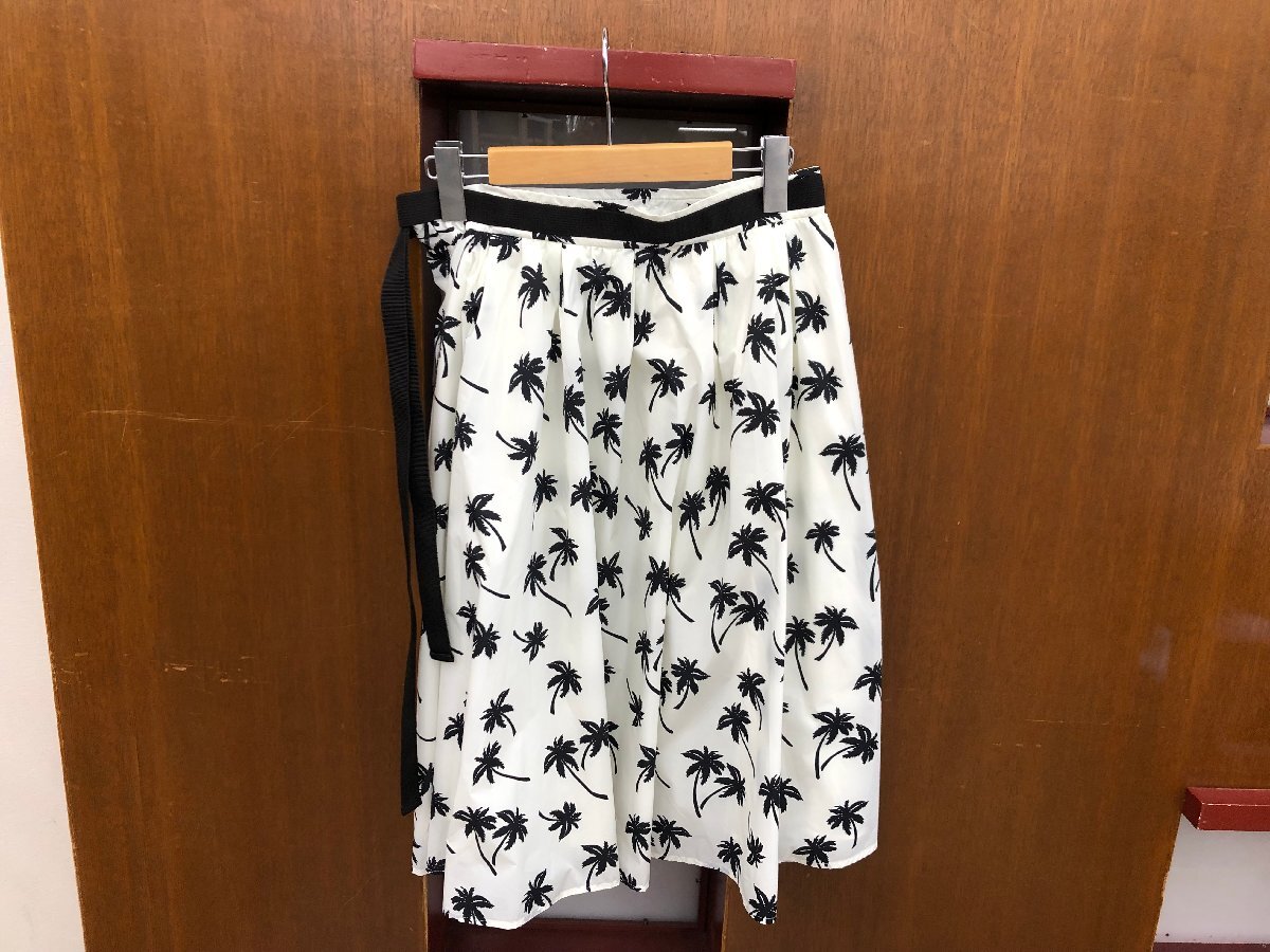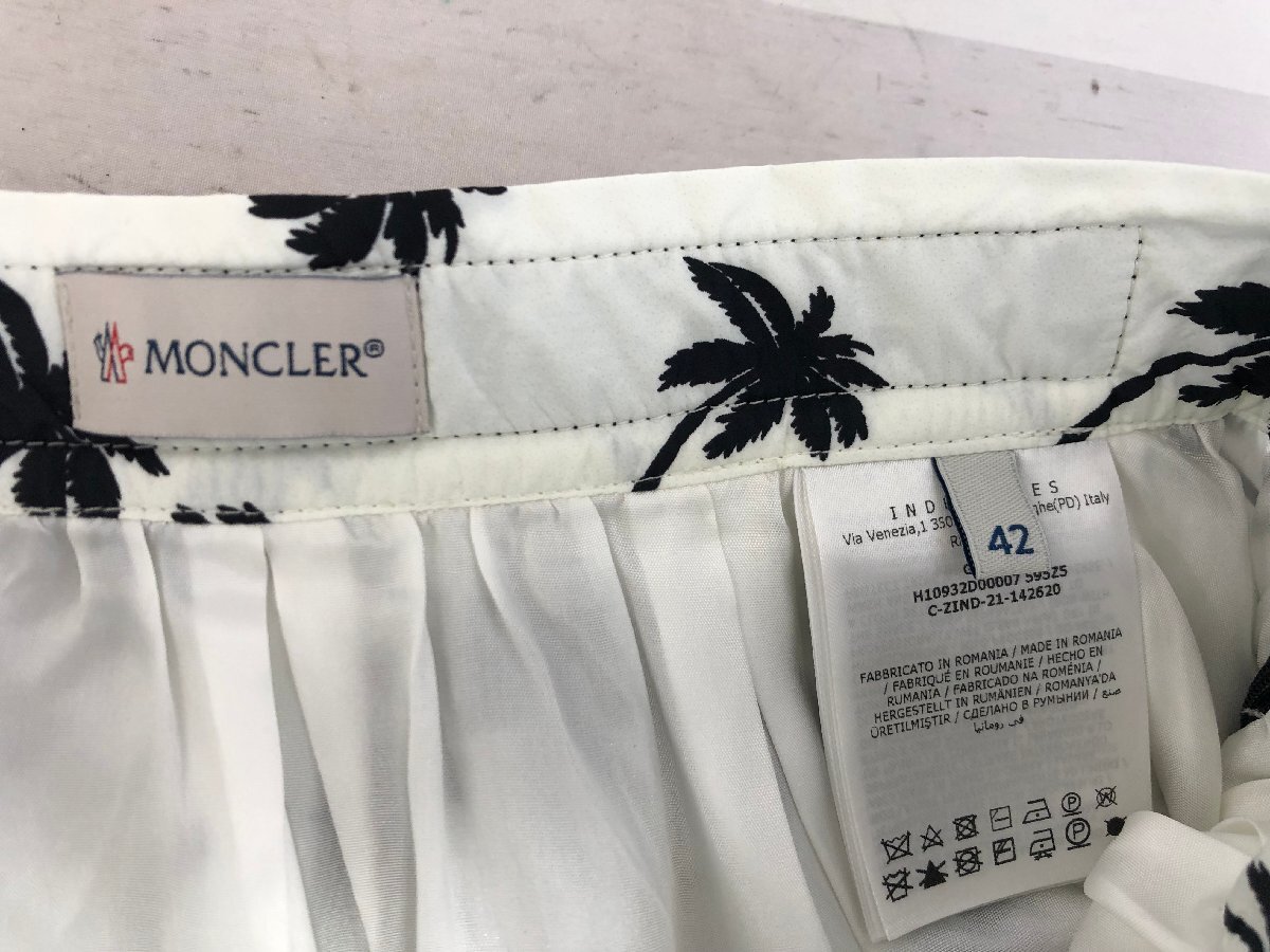 【MONCLER】 モンクレール 膝丈フレアスカート アイボリー×ブラック ヤシの木柄 サイズ:42・L ボトム SY02-EYO