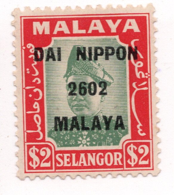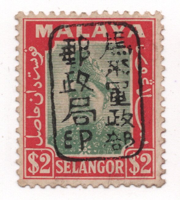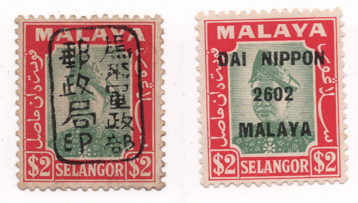 [3163]南方占領地 マライ セランゴール 2$ 軍政部単枠 黒加刷とローマ字加刷 2種