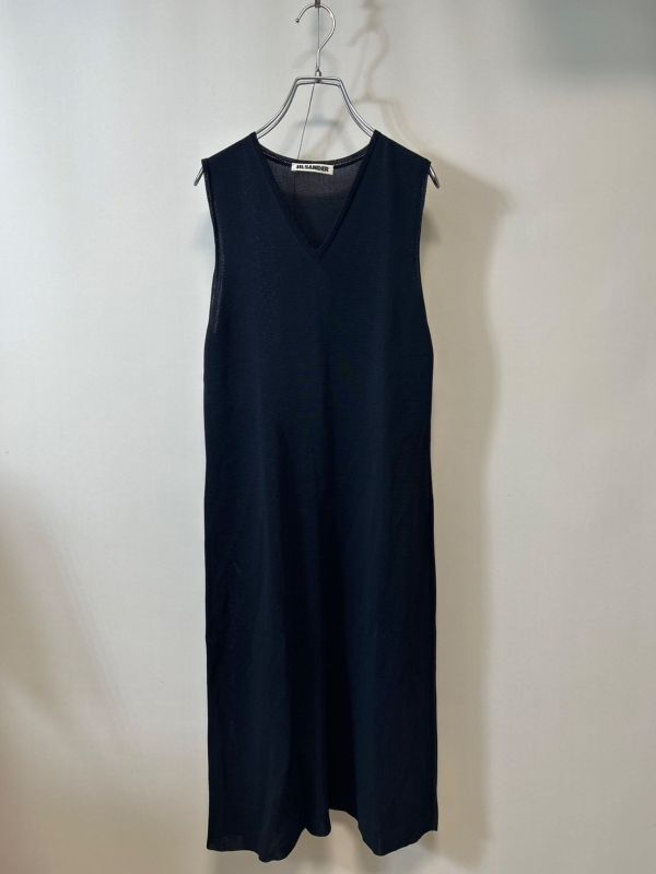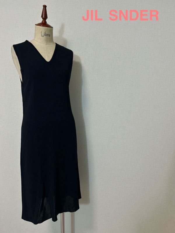 G0117★5 高級 JIL SANDER ジルサンダー ストレッチ生地 フレア ワンピース ロング ブラック レディース