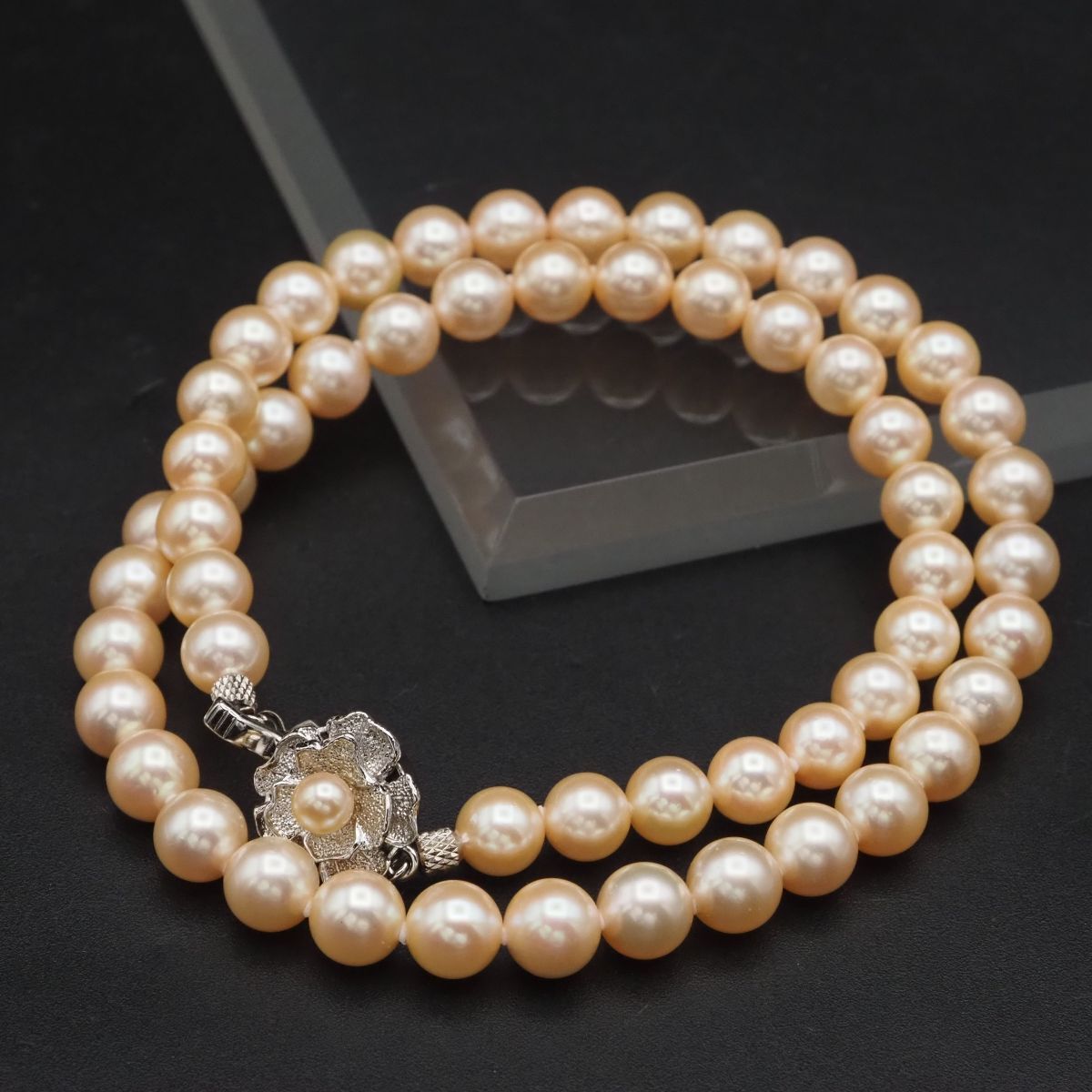 F851 本真珠 7.5mm珠 パール SILVER刻印 ネックレス デザイン シルバー 6月誕生石