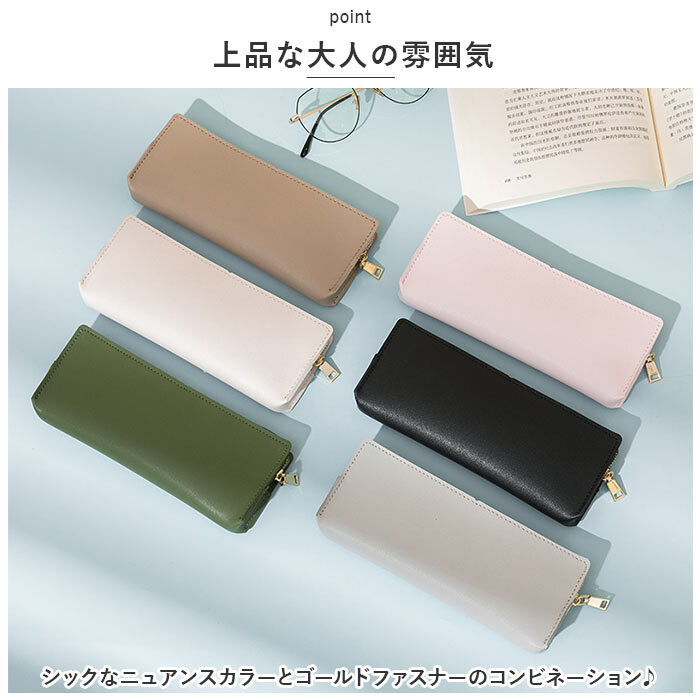商品説明 | ・・シンプルで大人カラーのPUレザーペンケースが登場! ・【見た目以上の収納力】 ・コンパクトなのに、見た目以上の収納力!ペン、消しゴム、修正テープなど必要なアイテムをしっかり収納◎ ・【コの字ファスナーで大きく開く】 ・開口部はコの字に開くので、大きく開いて中の筆記用具などをストレスなく出し入れ出来る! ・【撥水効果でお手入れラクチン】 ・表面は撥水効果があるので、ちょっとした汚れなどはサッと拭くだけで◎ ・【上品な大人の雰囲気】 ・シックなニュアンスカラーとゴールドファスナーのコンビネーション♪大人っぽい雰囲気がお好きなOLや主婦の方々にもおすすめ♪ ・【プチギフトにピッタリ】 ・学生から社会人の方など、幅広い年代の方などへのちょっとしたお祝いに最適! |