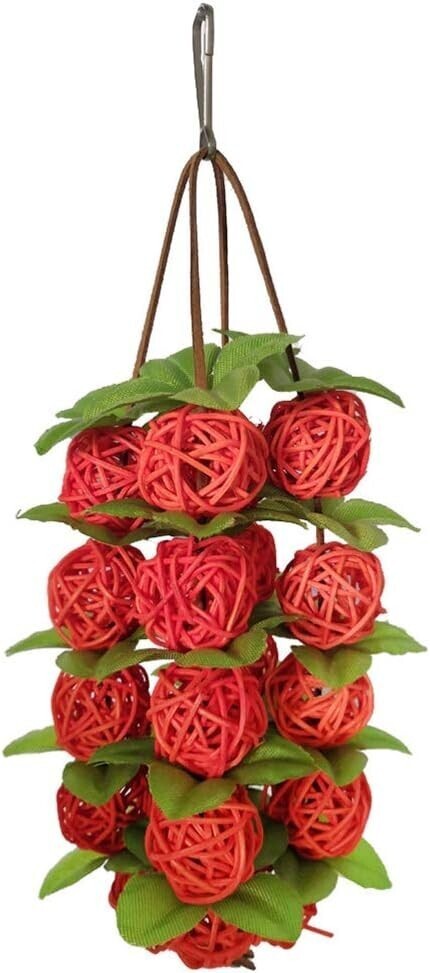 インコ おもちゃ かじる玩具 吊り下げタイプです。籐ボールやプラスチックを使用した知育玩具で、ストレス解消や退屈防止に最適です。