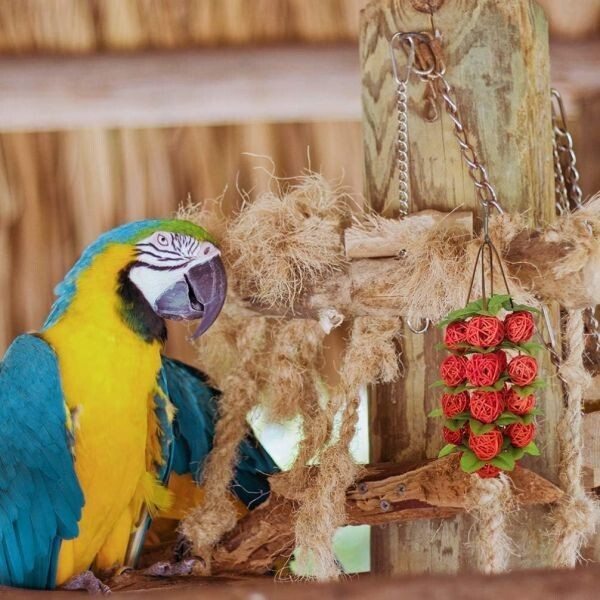 毒性のないペットセーフ素材を使用し、安心して長く遊べます。かじる・ぶら下がる・揺らすなど自然な習性を活かして遊べる知育アイテムです。