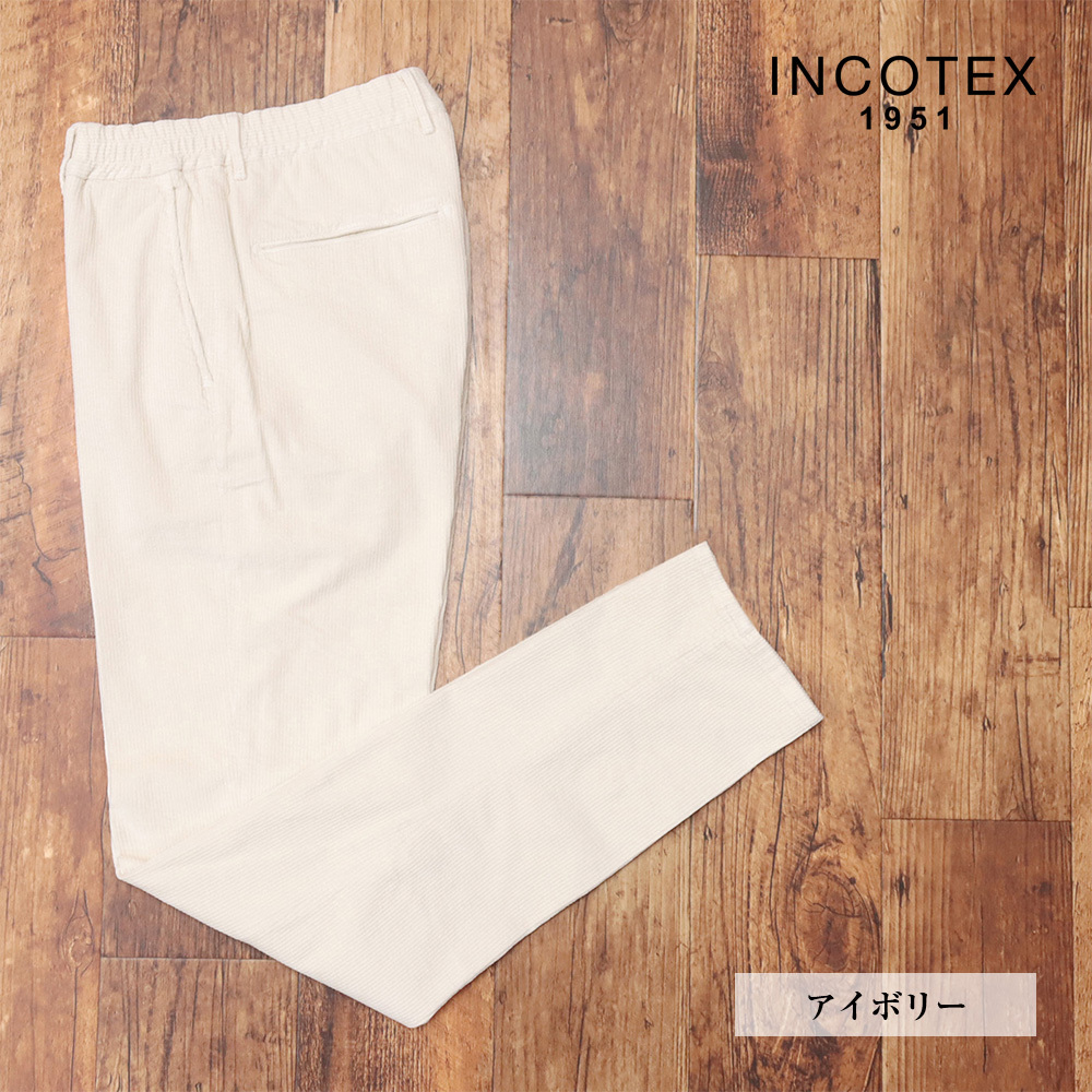 24AW/INCOTEX/32インチ/イージーパンツ 1SA166 4687A コーデュロイ伸縮 ガーメントダイ 美脚 新品/アイボリー/mb157/