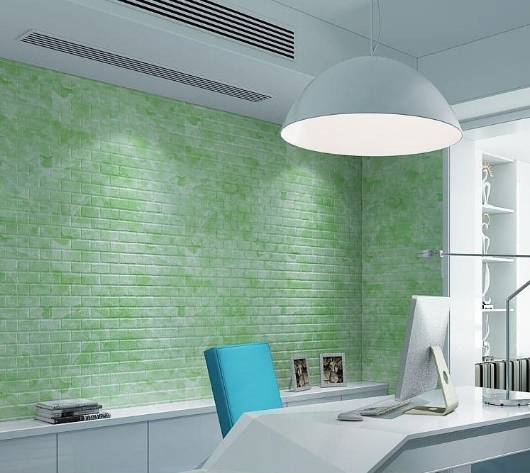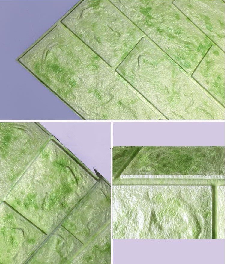 【50枚】高品質 3D クッション 壁 シール 大理石×グリーン レンガ調 糊付き リメイク 70×77cm 耐水 抗菌 傷防止