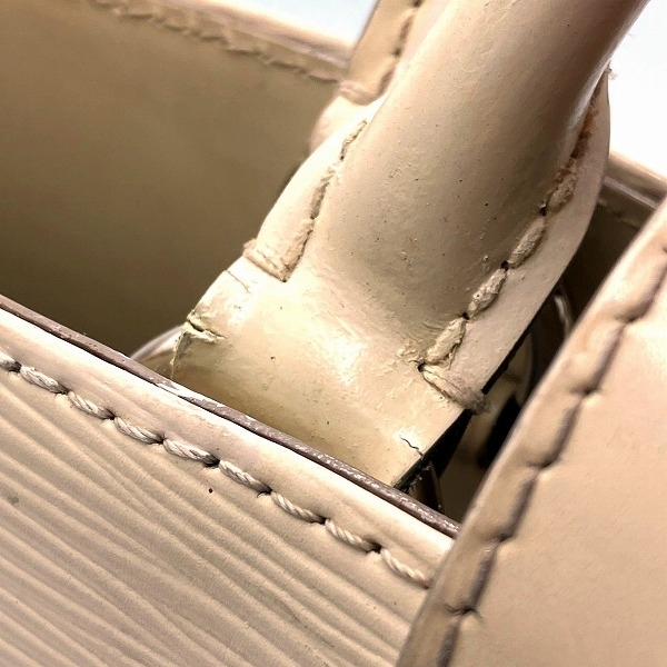 【ブランド】ルイヴィトン 【ライン】エピ 【商品名】ミラボーPM 【型番】M4033J 【シリアル】SN4182 【カラー】イヴォワール(ホワイト) 【素材】エピレザー 【仕様】外側:ポケットなし 内側:オープンポケット×2、ファスナー付ポケット×1 【サイズ】H約22cm×W約32cm×D約13cm 持ち手:約29cm 【付属品】なし 【ランク】B (使用感あり) 【状態】持ち手:擦れ、汚れ、傷、ひび割れ、中程度有り 外側の状態:擦れ、角擦れ、汚れ、傷、中程度有り 内側の状態:汚れ、臭い、小程度有り 金具の状態:傷、擦れ、中程度有り | |