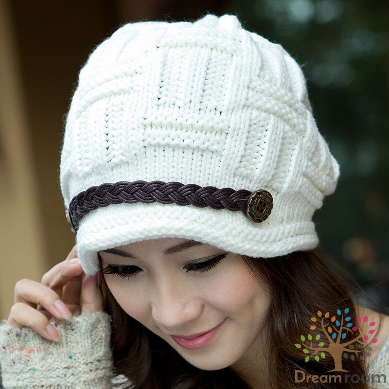 1スタ☆ポイント編みベルト ニットキャップ【ホワイト 】編みこみカチューシャデザインがcute!オルチャン ゆるカジ セレブ ニット帽子 K-262