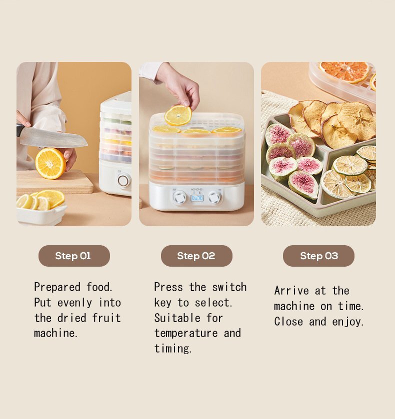 温度を35~70℃まで細かく微調整できるので、いろんな食材の乾燥に使えます。食品の種類や目的に合わせて、適切な温度で乾燥させることができます。