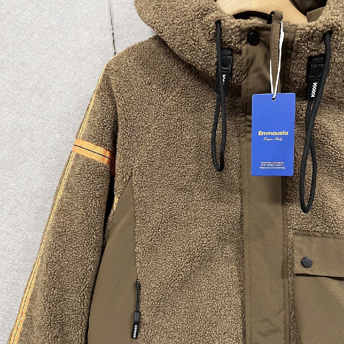 絶賛・ダウンジャケット 定価11万◆Emmauela・イタリア・ミラノ発◆カシミア ダックダウン90% 防寒 もこもこ 切替 ボアブルゾン 秋冬 M/46サイズ
