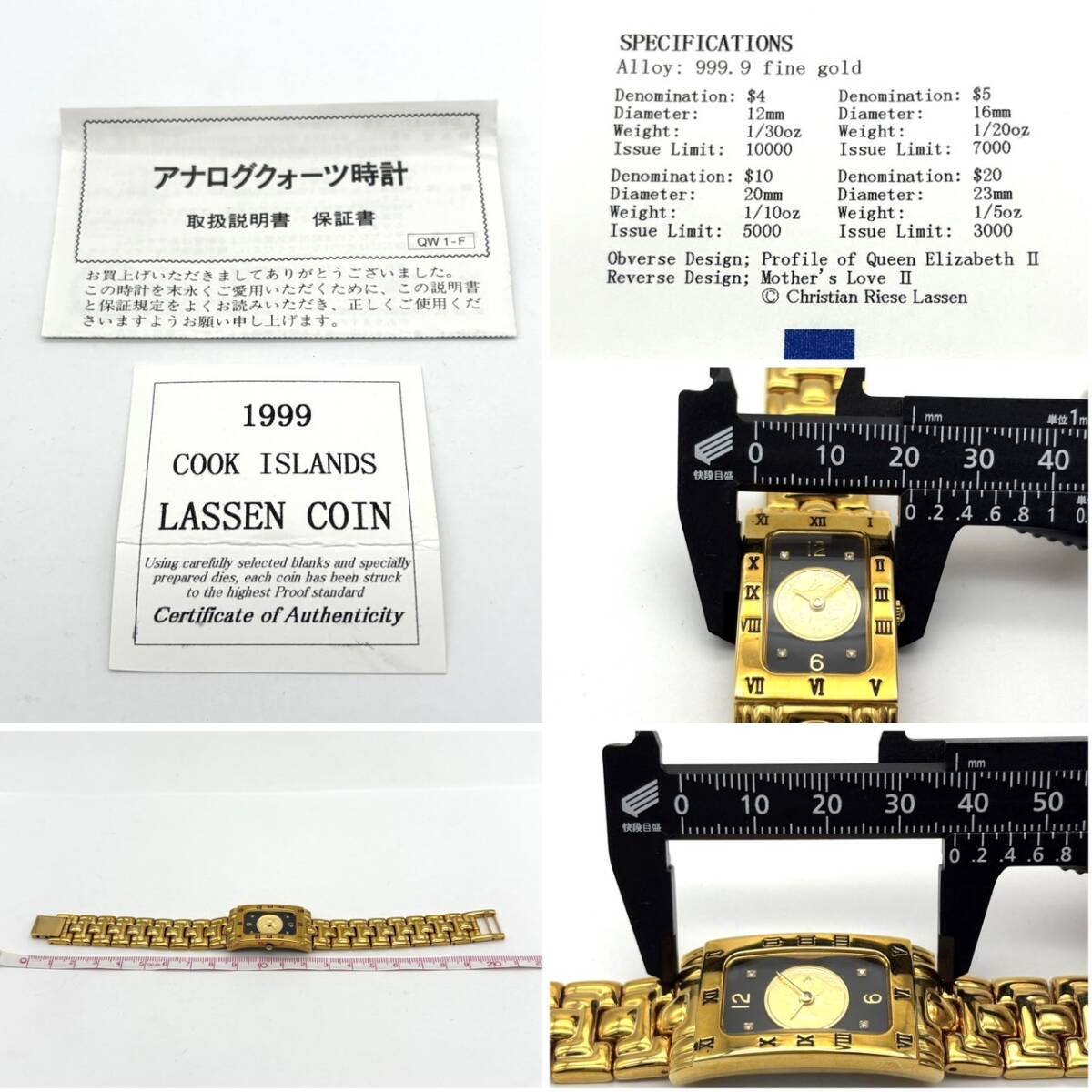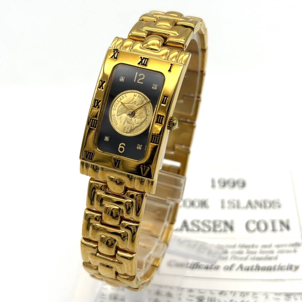 TY2711■【現状不動】ゴールドコインウォッチ 時計 ラッセン 金貨 文字盤 K24 1/30oz刻印あり 999.9 ジャンク 1円スタート | |||