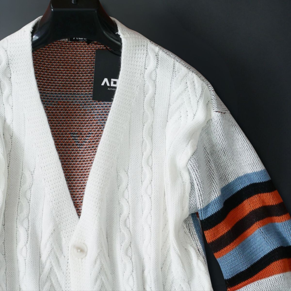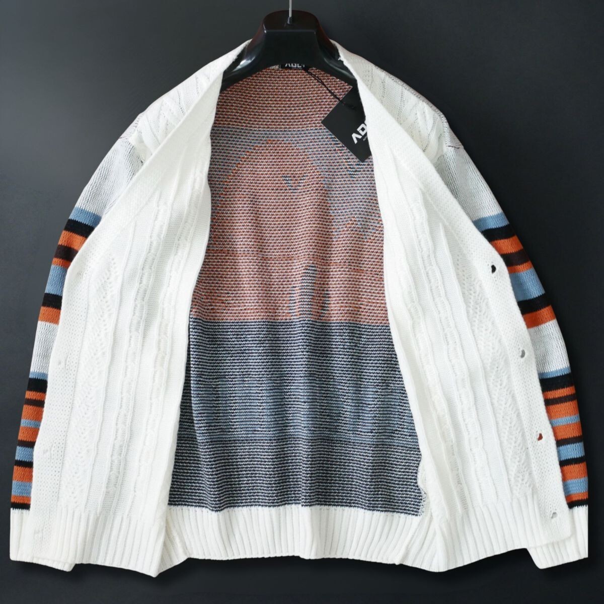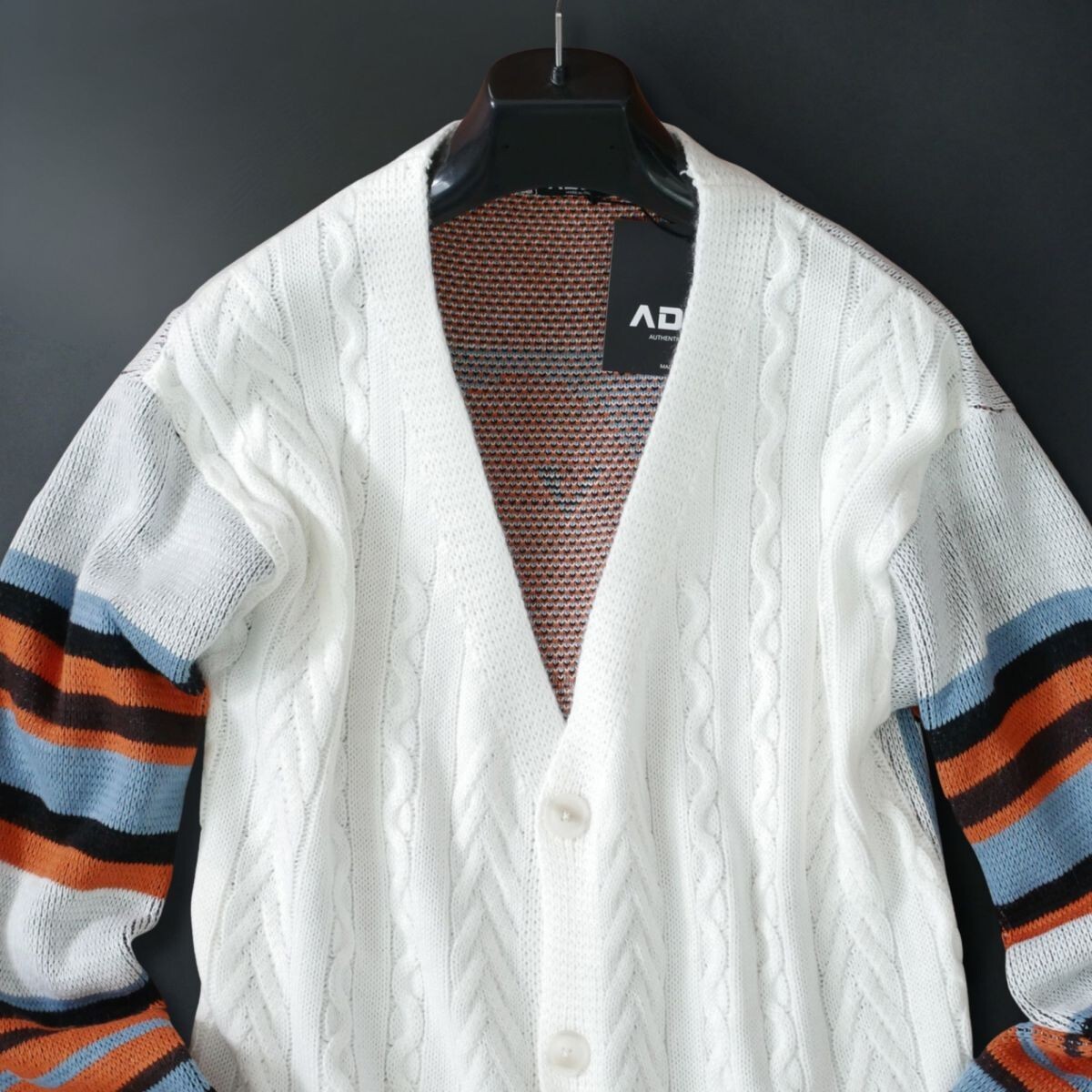 ●イタリア ミラノの街着ブランド「AD.メイドインイタリー」の、ウール混紡カーディガンです。日本未入荷で、当方のみご紹介する、入手困難なアイテムです。今年のイタリアでも多く見られます、肩の切り替えがやや外側にあり、そして身幅は美しいシルエットで、丈感もちょうどよく収まる貴重な逸品です。ご試着いただいた時に、どなたも簡単にスタイリッシュな雰囲気で着こなしていただけそうです。 ●「AD.メイドインイタリー」は、ミラノ発祥の現代のイタリアのスタイリッシュなデザインのアイテム揃いです。主にイタリア国内のみに発信されているブランドで、イタリア人の体系は、他の欧州諸国に比べ日本人にも近く、ちょうど良いパターンにて生産されていますので、ご到着後、お直しなしですぐにご着用いただけるアイテムばかりです。ファッションに敏感なイタリアの方も、簡単にどこでも手に入るブランド物に手に出すよりも、自らの発見で見つけ出し、ご自身のスタイルを作り上げていく印象です。多国展開のグローバル化されたブランドにはない、ジャストサイズ感のある逸品を見つけてみて下さいませ。 ●こちらはイタリア・ミラノの街着ブランド「AD.メイドインイタリー」による、2024-25年秋冬コレクションから登場した、ウール混紡カーディガンです。大胆なカラーブロックデザインと、遊び心溢れるディテールが特徴のこのアイテムは、日常のコーディネートにユニークなアクセントを加えてくれる一着です。袖にはブルーとオレンジのストライプが施され、背面には印象的なアートワークが際立ちます。高品質な70%アクリルと30%ウールの混紡素材で作られ、ウールの暖かさとアクリルの耐久性、軽やかさが見事に調和したアイテムです。フロントは深めのVネックとボタン留めで、クラシカルなケーブル編みとモダンなデザインの融合が、シンプルながらも洗練された印象を演出します。特に寒さが厳しくなる秋冬シーズンに最適な一着で、カジュアルなデニムやシンプルなボトムスと合わせてもスタイリッシュなコーディネートが可能です。イタリア製の確かな品質を誇りながら、デザインの面でも個性を発揮するこのカーディガンは、スタイルに遊び心を加えたい方におすすめです。 ●伸縮性あり ●色:パンナビアンコ系 ほか ●素材:ウール30% アクリル70% ●サイズ:S M L XLの中から、お選びいただけます。*ご落札後、取引連絡よりご希望のサイズをお申し付け下さい(後の変更・交換・キャンセルは一切して頂けません)。ご落札後、24時間以内のご連絡の程お願い申し上げます。*下記詳細サイズもご確認の上、よろしくお願いいたします。 ●詳細サイズ(cm)置いた状態で: S *イタリアサイズ46相当。日本サイズ概ねMサイズ辺りとなりますが、着用時の伸縮により比較的多くの方に適応頂けそうです。下記詳細サイズもご確認の上、よろしくお願いいたします。 裄丈:85(平置き時後ろ襟中心の付け根部分から、肩を通って袖口までの距離) (例)*肩幅45cmの方がご着用になられた時、袖丈は概ね約62.5cmほどになります。 身幅:49~(右脇下~左脇下の直線距離) 着丈:67(襟の付け根~裾まで) M *イタリアサイズ48相当。日本サイズ概ねM-Lサイズ辺りとなりますが、着用時の伸縮により比較的多くの方に適応頂けそうです。下記詳細サイズもご確認の上、よろしくお願いいたします。 裄丈:85(平置き時後ろ襟中心の付け根部分から、肩を通って袖口までの距離) (例)*肩幅45cmの方がご着用になられた時、袖丈は概ね約62.5cmほどになります。 身幅:51~(右脇下~左脇下の直線距離) 着丈:70(襟の付け根~裾まで) L *イタリアサイズ50相当。日本サイズ概ねLサイズ辺りとなりますが、着用時の伸縮により比較的多くの方に適応頂けそうです。下記詳細サイズもご確認の上、よろしくお願いいたします。 裄丈:87(平置き時後ろ襟中心の付け根部分から、肩を通って袖口までの距離) (例)*肩幅45cmの方がご着用になられた時、袖丈は概ね約64.5cmほどになります。 身幅:53~(右脇下~左脇下の直線距離) 着丈:73(襟の付け根~裾まで) XL *イタリアサイズ52相当。日本サイズ概ねXLサイズ辺りとなりますが、着用時の伸縮により比較的多くの方に適応頂けそうです。下記詳細サイズもご確認の上、よろしくお願いいたします。裄丈:88(平置き時後ろ襟中心の付け根部分から、肩を通って袖口までの距離) (例)*肩幅45cmの方がご着用になられた時、袖丈は概ね約65.5cmほどになります。 身幅:56~(右脇下~左脇下の直線距離) 着丈:76(襟の付け根~裾まで) 詳細サイズご参考 ※大よその採寸となります。 ※ご落札後取引ナビよりサイズご相談頂くことが無いよう、サイズは事前のお決め頂いた上よろしくお願い致します。 ※ご落札後、ご希望サイズを取引ナビより、必ずお知らせ下さいませ。ご落札後24時間以内を経過後、ご希望サイズをいただけない場合は、取引のキャンセルもしくは、こちらにて任意のサイズにて選択させていただくことがございます(その場合も後の