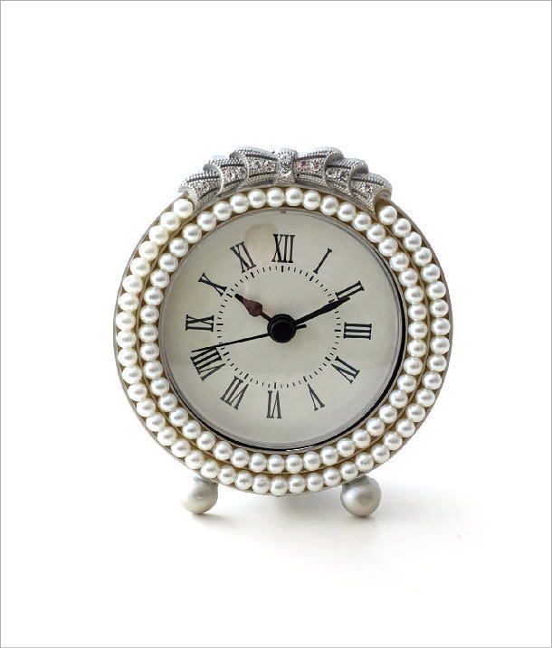 | ぐるりとパールビーズで飾った エレガントなスタンドクロックです メタルリボンにもビジューを付けた 上品で可愛い置き時計です 商品名 : テーブルクロック パールラウンド 商品番号 : abk8439 全体のサイズ(cm) : 幅10×奥行3.5×高さ10.5 文字盤のサイズ : 円周7 材質 : 合金 プラスチックビーズ 他 重量 : 190g 生産国 : 中国 ※目覚まし機能はありません ※単三電池×1本付 ※商品の特性上、本体や表面の小傷・こすり傷等はご容赦ください |