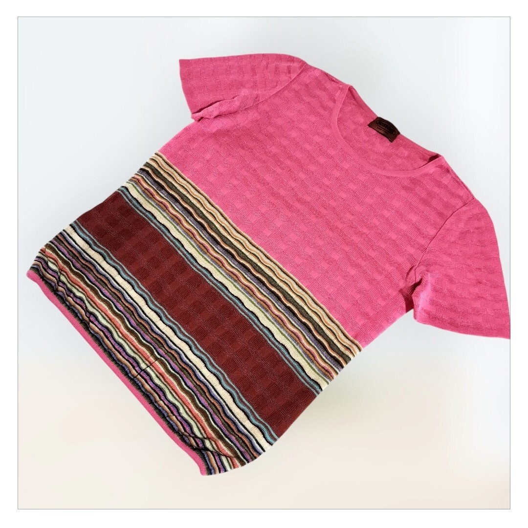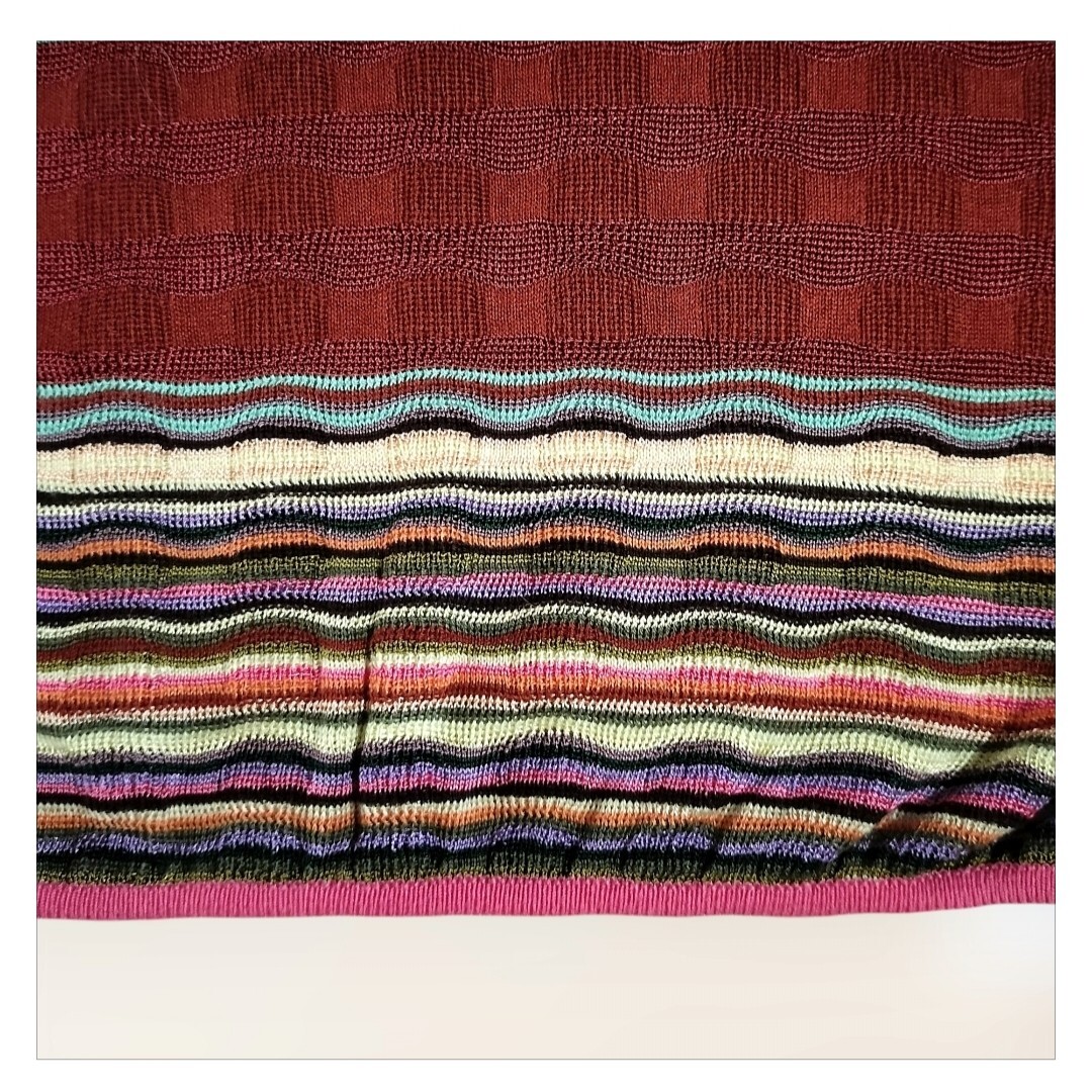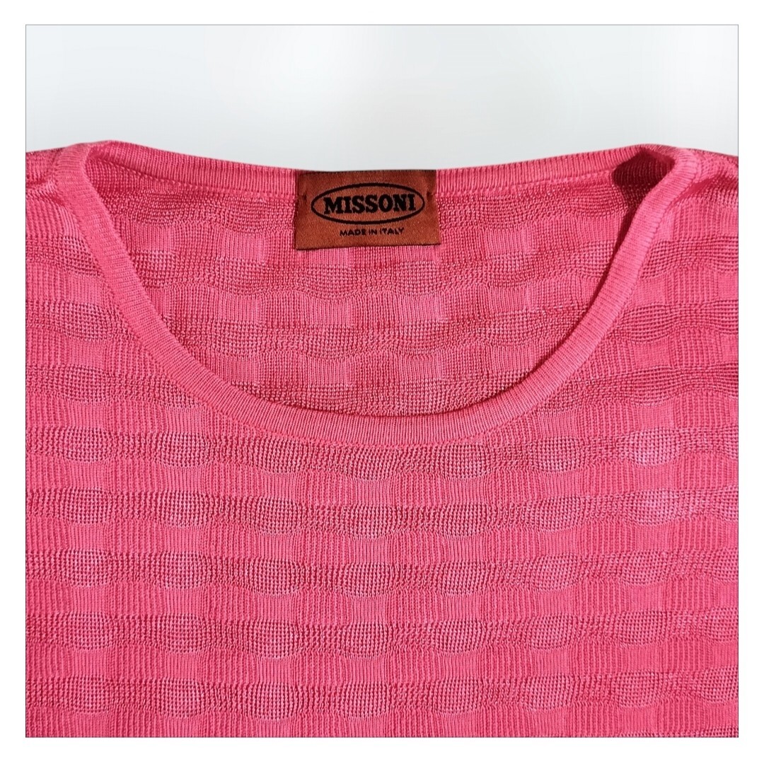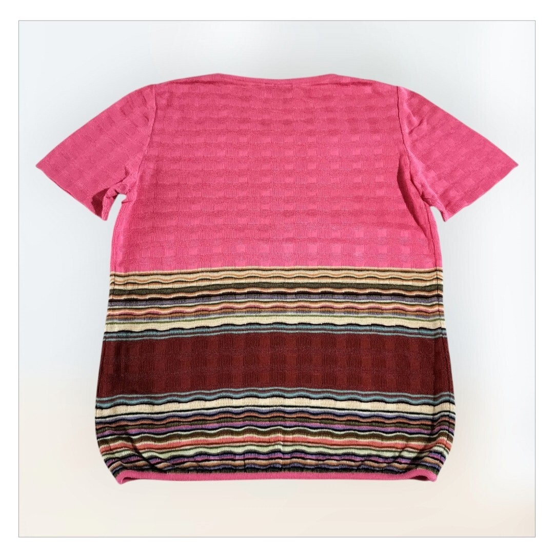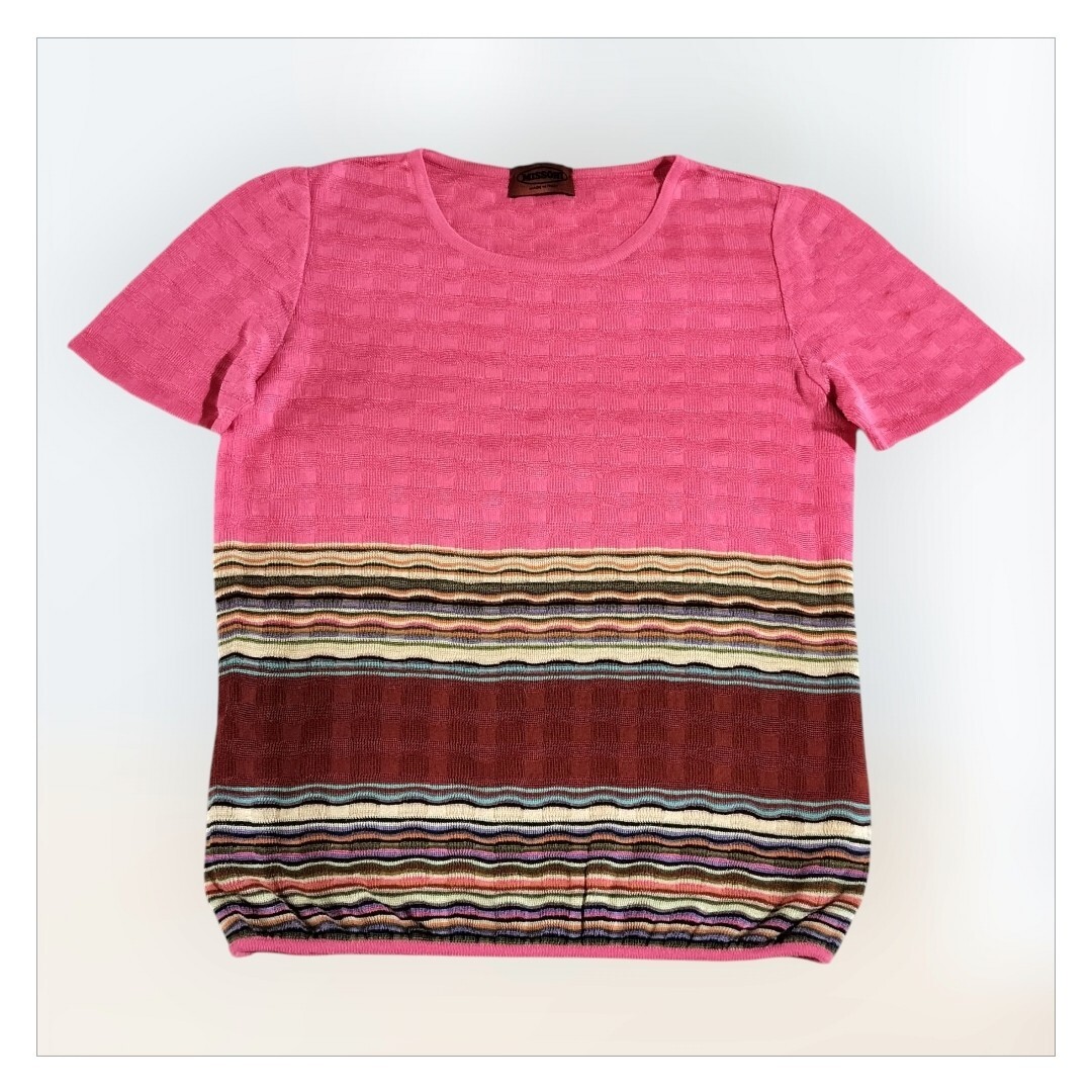 ミッソーニMISSONIのピンクの半袖ニット、ボーダーデザインでウエストがゴム仕様。