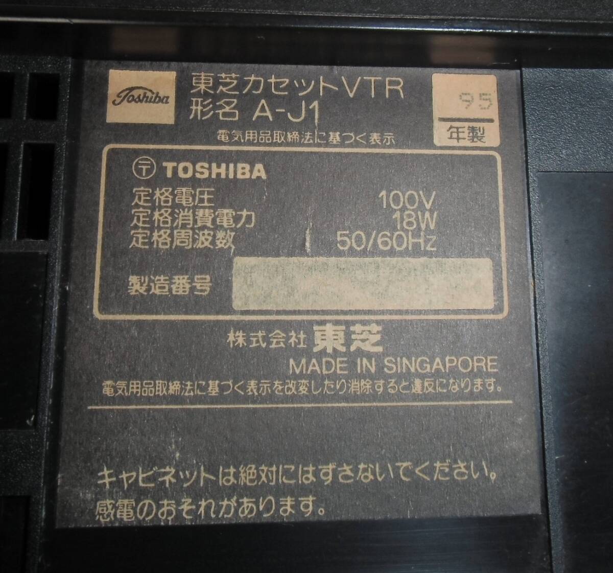 ■ け-30 東芝 カセットVTR A-J1 通電OK 中古 1995年製 ※約寸:高8cm 幅37cm 奥33cm 重さ3.9kg