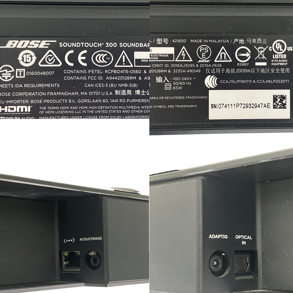BOSE 421650 SOUNDTOUCH 300 SOUNDBAR サウンドバー スピーカー オーディオ 音響 機器 中古 Y10454067 |
