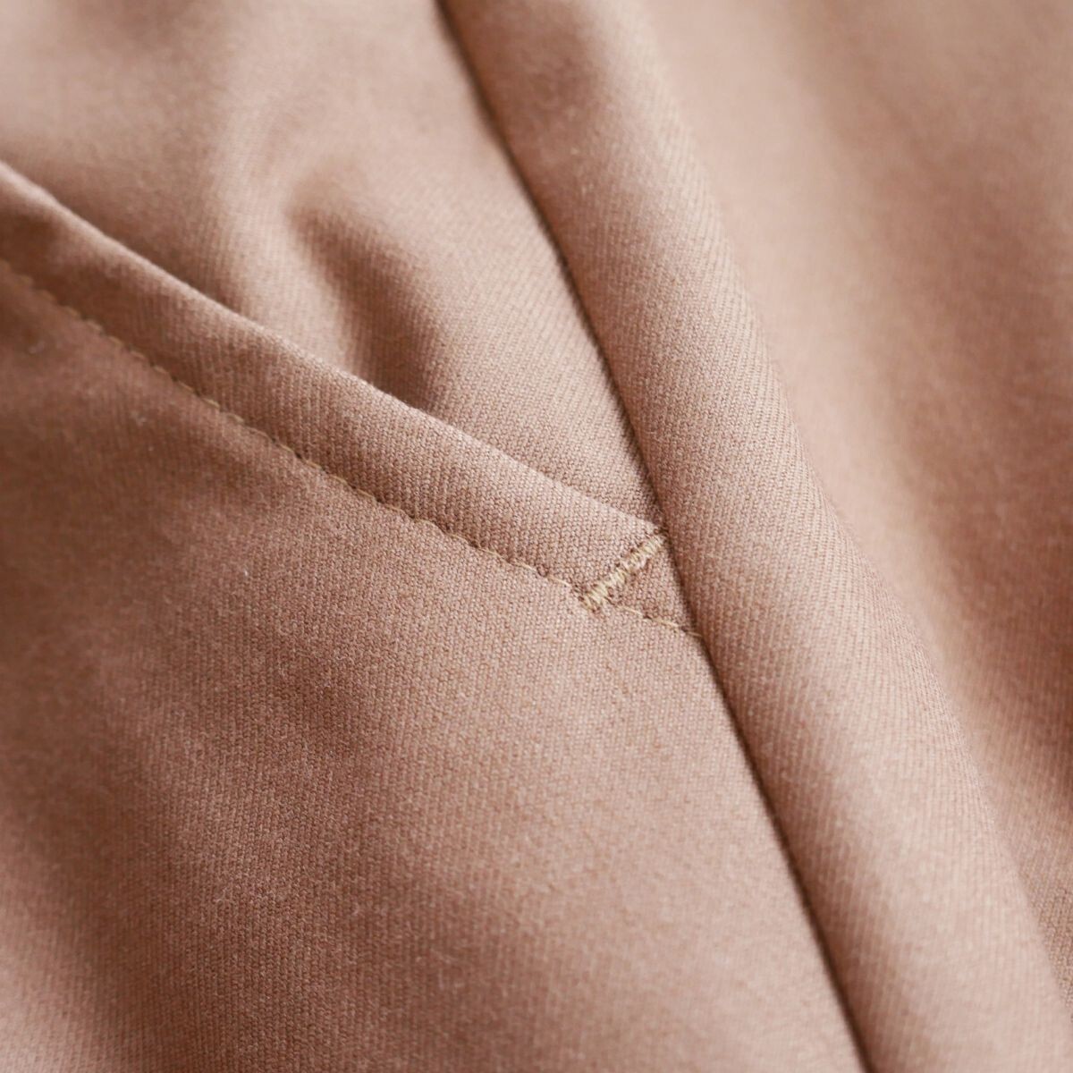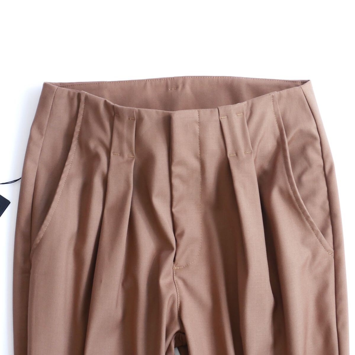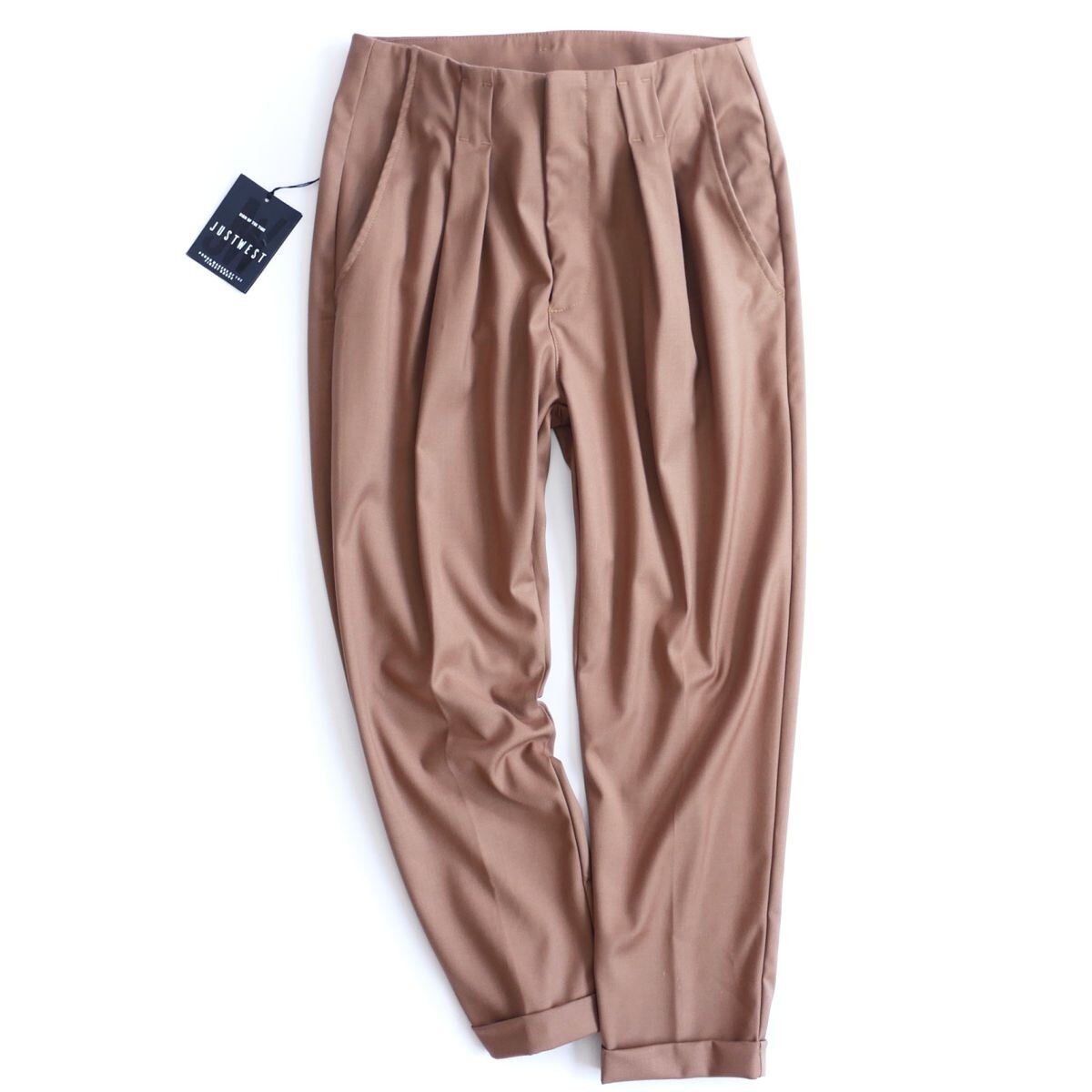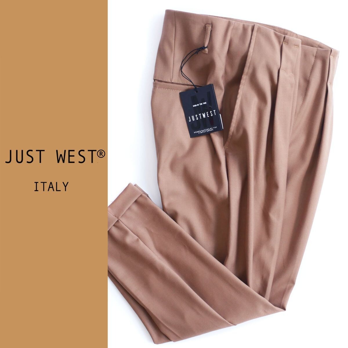 ●イタリア製のラグジュアリー感溢れる一本。こちらは「JUSTWEST(ジャストウェスト)」による、今季2025-2026秋冬コレクションからのタック入りスラックスパンツでございます。オールシーズンご利用いただけそうな生地質です。下に行くにつれて細身になり脚長効果のある美しいシルエットのテーパードパンツは、裾丈直しが入りますと元の裾幅がその分太くなり、全体のシルエットがそこないかねません。当方が提言しております「イタリージー」なスタイルでは、お直しなし・もしくは最小限のお直しのみでご利用いただけるものばかりですので、イタリア製のオリジナルデザインをそのままご体現いただけるので、貴重です。 ●シルエットは現代的な腰周りにゆとりを持たせつつ、裾にかけてテーパードしたバランス感が秀逸で、洗練された都会的スタイルを演出いたします。ジャケットのような存在感のパンツでございます。クラシカルなツープリーツのディテールに、滑らかで程よい光沢感を持つビスコース混ツイル素材を採用し、動きやすさと美しさを兼ね備えた一本となっております。普段ジョルジオアルマーニ他ラグジュアリーブランドのボトムをご愛用されていらっしゃる方も、雰囲気良く着こなしていただけます。またハイブランドにはない、最初からジャストサイズな丈感で、裾幅16-17cm台の美しいシルエットのデザインをそのままご愛用いただけるのも、当方からお勧めするイタリージーなアイテムらしさです。やや短めにとって靴下を見せ気味にする、現代イタリア人の着こなしでご利用いただけます。この美しいスタイルのボトムを、ほとんどの日本人がお直し無しでご利用いただけるのは、貴重なシリーズかと思います。 ●フロントにはツータック仕様を取り入れ、立体感のあるフォルムが特徴。カジュアルな装いはもちろん、ジャケットスタイルとも相性がよく、オン・オフ問わず幅広くご着用いただけます。サイドにはスラッシュポケット、バックには両玉縁ポケットを配し、実用性も兼備。普段ハイブランドなどご利用いただいているエグゼクティブにしか穿きこなせない、優雅さがございます。様々なご体型の方にフィットしつつも、バタ臭さとは無縁のスラックスパンツですので、「スタイリッシュなかっこよさ」をラクラクに手に入れられます。 ●ベルトループを備えたウエストバンドは丁寧なステッチ仕上げとなっており、品格漂う大人のパンツスタイルに仕上がっております。裾はダブル仕上げで、足元にさりげない重厚感を加味。ウエストボタンを排除し、上までジップで止められ、寸断のないすっきりとした腰回りデザインを実現しています。控えめなディテールの中にも、イタリアンメイドならではの上質感が際立ちます。 ●スペアボタンが付属いたしますので、長くご愛用いただける安心仕様となっております。 ●ツータック。前後ポケットあり。伸縮性あり。裾ダブル仕上げ。 ●イタリア製 ●色:キャラメルブラウン系 ●素材:ビスコース75%、ポリエステル20%、エラスタン5% ●サイズ:42 44 46 50 52の中から、お選びいただけます。ワンサイズ小さいサイズをお選びいただくと、ちょうど良いサイズ感になりそうです。*ご落札後、取引連絡よりご希望のサイズをお申し付け下さい(後の変更・交換・キャンセルは一切して頂けません)。ご落札後、24時間以内のご連絡の程お願い申し上げます。*下記詳細サイズもご確認の上、よろしくお願いいたします。 ●詳細サイズ(cm)置いた状態で: 42 *通常44の方向け。日本サイズ概ねS-Mサイズ辺りとなりますが、着用時の伸縮により比較的多くの方に適応頂けそうです。下記詳細サイズもご確認の上、よろしくお願いいたします。 ウエスト約:79-82 わたり幅:約32.5 股上:30 股下:61*裾ダブル仕上げ、約6㎝の折り返し分あり 裾幅:16*左前裾に本人にしかわからない目立たない程度の、微かな色ムラがあります。 44 *通常46の方向け。日本サイズ概ねMサイズ辺りとなりますが、着用時の伸縮により比較的多くの方に適応頂けそうです。下記詳細サイズもご確認の上、よろしくお願いいたします。 ウエスト約:81-84 わたり幅:約34 股上:30 股下:62*裾ダブル仕上げ、約6㎝の折り返し分あり 裾幅:16 46 *通常48の方向け。日本サイズ概ねM-Lサイズ辺りとなりますが、着用時の伸縮により比較的多くの方に適応頂けそうです。下記詳細サイズもご確認の上、よろしくお願いいたします。 ウエスト約:84-87 わたり幅:約36 股上:31 股下:63*裾ダブル仕上げ、約6㎝の折り返し分あり 裾幅:17 50 *通常52の方向け。日本サイズ概ねXLサイズ辺りとなりますが、着用時の伸縮により比較的多くの方に適応頂けそうです。下記詳細サイズもご確認の上、よろしくお願いいたします。 ウエスト約:92-95 わたり幅:約37 股上:31.5 股下:64.5*裾ダブル仕上げ、約6㎝の折り返し分あり 裾幅:17.5 52 *通常54の方向け。日本サイズ概ねXXL-サイズ辺りとなりますが、着用時の伸縮により比較的多くの方に適応頂け