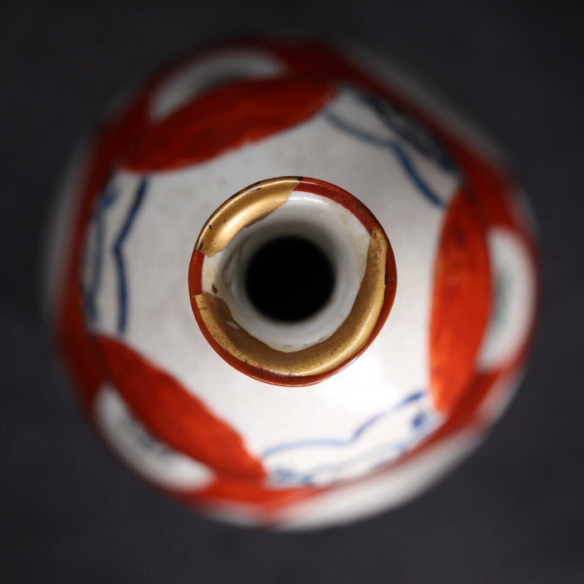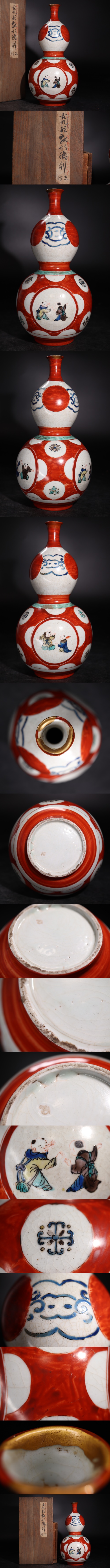 | 「 古九谷 瓢箪型 徳利 」 金継ぎ 木箱付 / 九谷 色絵 赤絵 酒器 茶器 煎茶道具 煎茶飾 .G2661 |