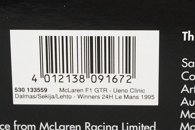 ● ミニチャンプス PMA 1/18 McLaren マクラーレン F1 GTR 24h ルマン 優勝 1995 #59 上野クリニック 530133559 ●