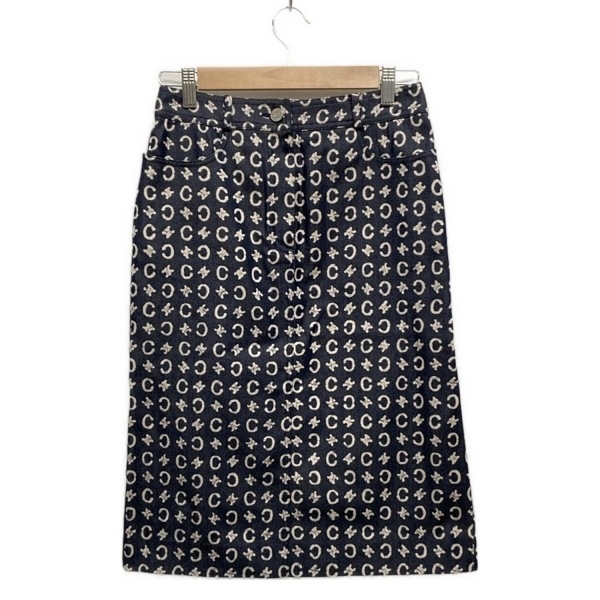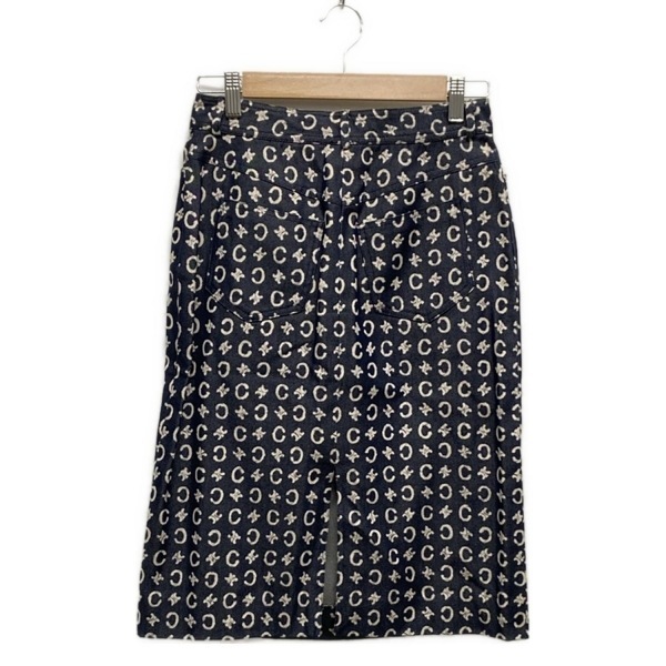 セリーヌ CELINE スカート サイズ36 S - ネイビー×アイボリー レディース ひざ丈/デニム/Cマカダム柄 美品 ボトムス