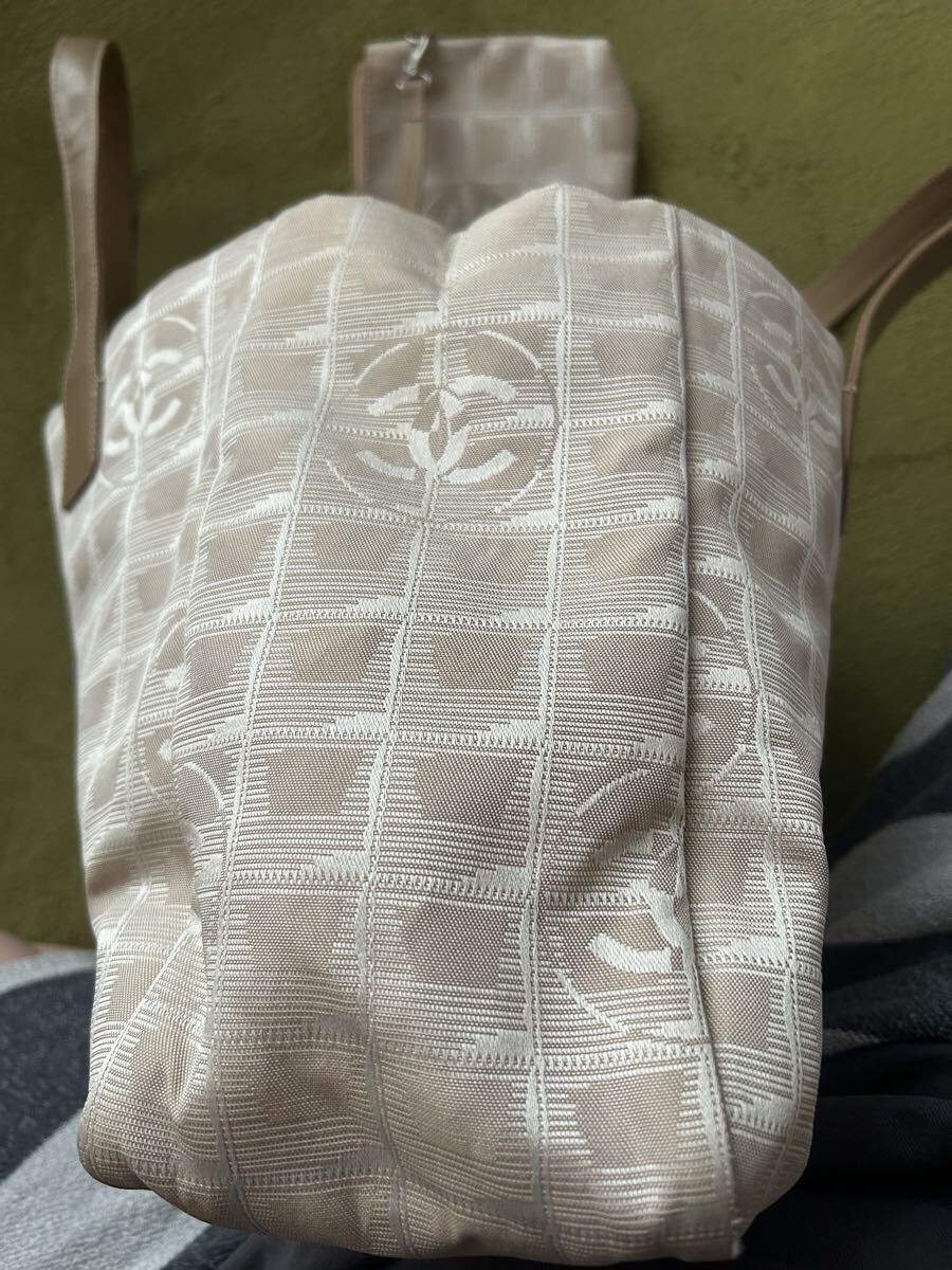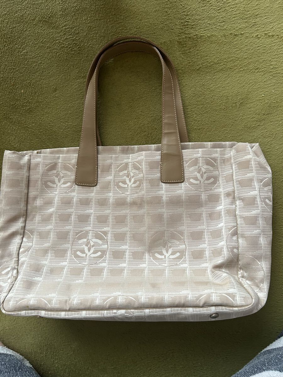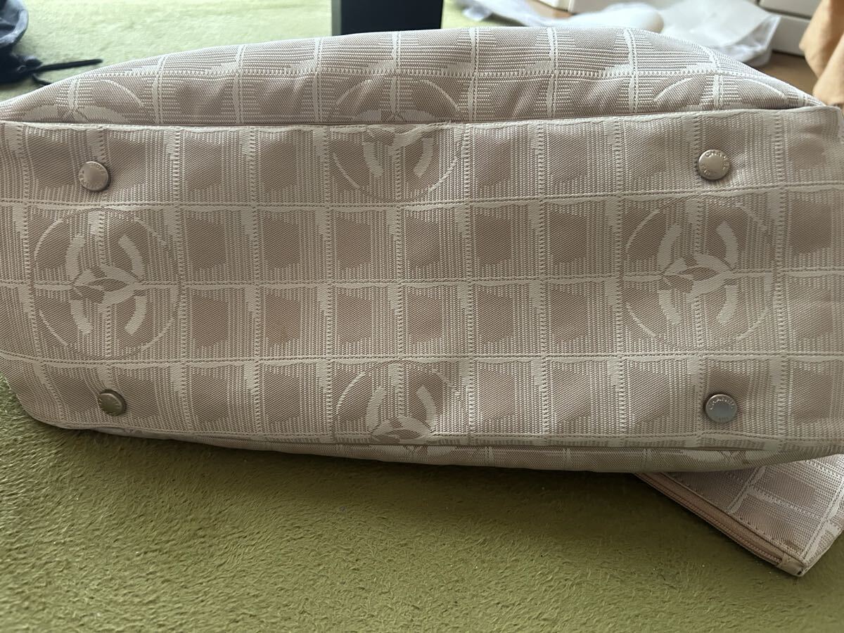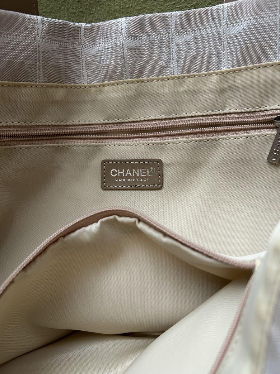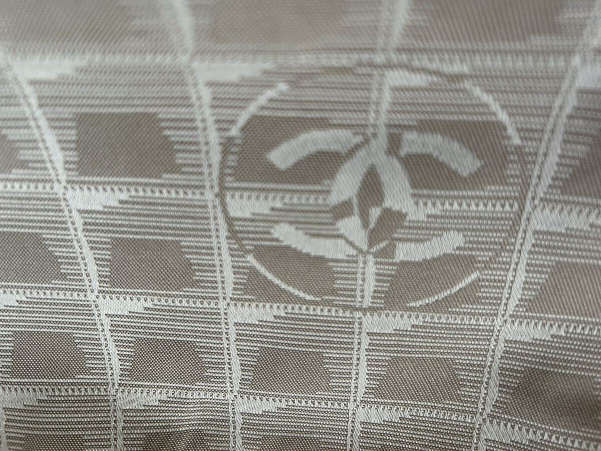 ベージュのチェック柄トートバッグ、ジャガードで軽量。