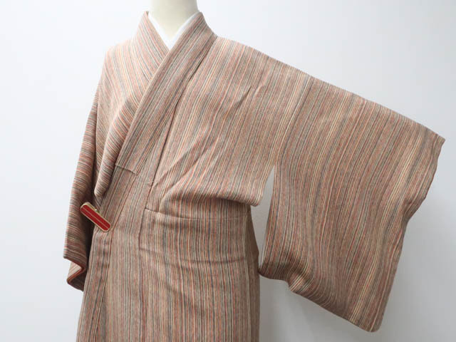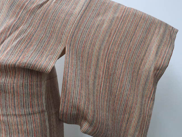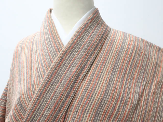 リサイクル商品のため、衿・両袖口薄汚れがございます。 表所々しみがございますが着用可能なお品です。 地色は 生成・灰紫・薄赤です。 1枚目の画像が近いお色かと思われます。 素材は正絹です。 |