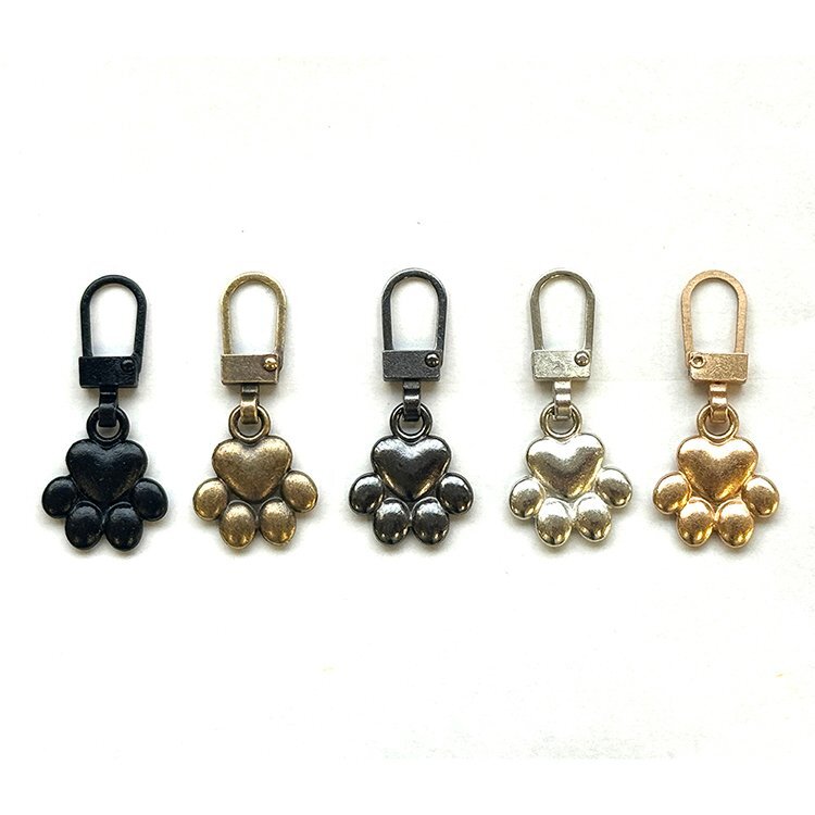 ◆ファスナー引き手5個セット 選べるデザイン お洒落 金属製 修理キット 手芸 手作り DIY バッグ 衣類 財布 靴 チャックカバン ファスナー修理 交換用 取付簡単【肉球型】ZIPT05S