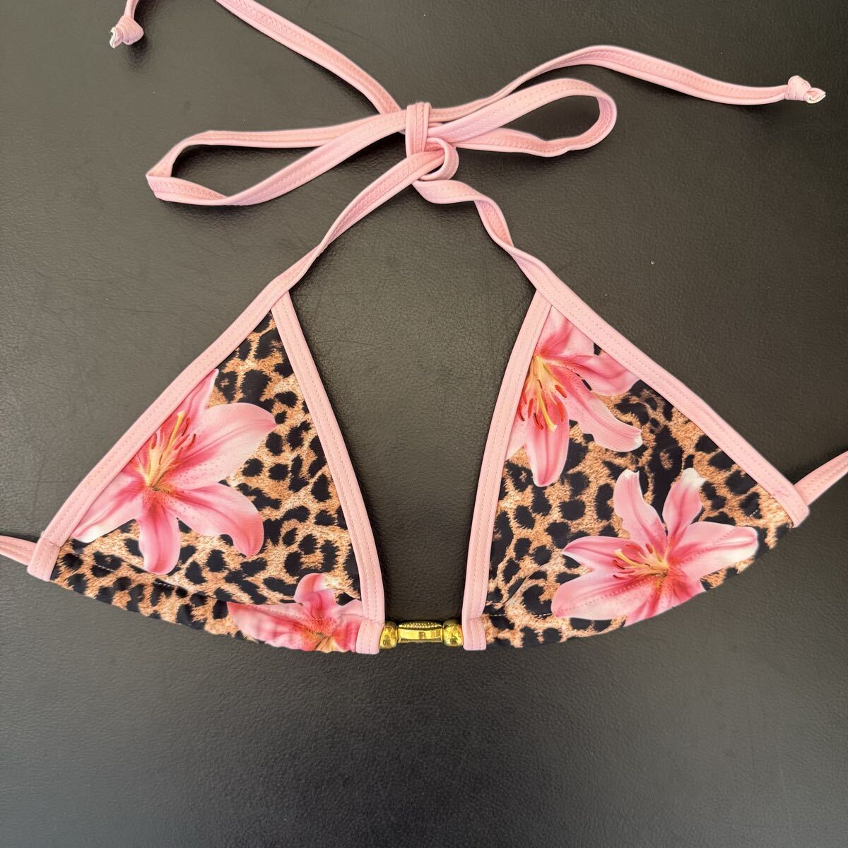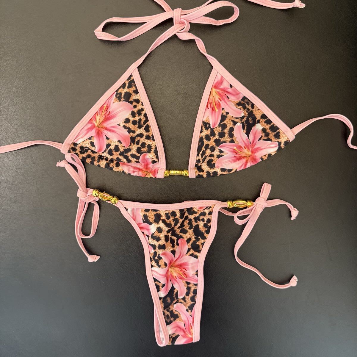 ホルターネックビキニ 上下セット レディース水着 ヒョウ柄 ピンク花柄