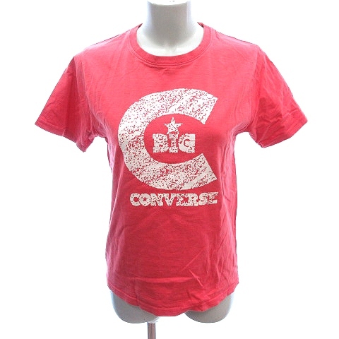 コンバース CONVERSE カットソー Tシャツ ラウンドネック プリント 半袖 L 赤 レッド /AU レディース