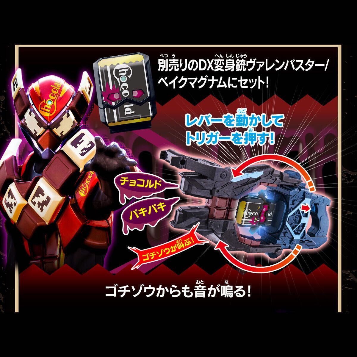さらにスパーキングミゴチゾウは「DX変身ベルト ビターガヴ」と、チョコルドゴチゾウは「DX変身銃ヴァレンバスター」と、ブレイクッキーゴチゾウは「DX変身銃ベイクマグナム」とそれぞれ連動が可能。通常DX版のゴチゾウ同様に変身遊びが可能なほか、変身アイテムから流れる音声に加えてゴチゾウからも効果音を発動させることが可能です。