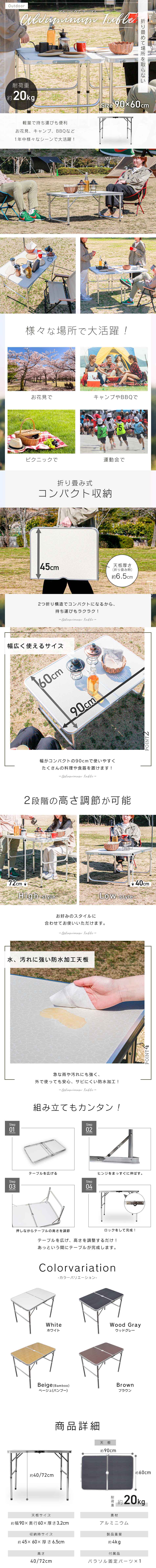 | かんたん組立の折りたたみアウトドアテーブル(2~4人用)です。 コンパクトサイズの90cm×60cm! サビに強いアルミを使用! 天板には防水加工が施されています。 必要のない時は折りたたんで収納できる! 取っ手付きで持ち運びもラクラク♪ 高さは「ハイスタイル」「ロースタイル」の2段階調節。 付属の脚ジョイントを使用する場合はハイスタイルとして、 脚ジョイントを使用しない場合はロースタイルとして、 使用することができます。 キャンプ、バーベキュー、お花見などにとても便利! ■商品コード:A61A001 ■商品仕様 カラー:ホワイト サイズ:(約)幅90×奥行60×高さ40~72cm 収納時サイズ:(約)45×60×6.5cm 材質:アルミニウム 重量:(約)4kg 耐荷重:(約)20kg ■内容 テーブル本体、パラソル固定パーツ×1 ■注意事項 ・初めてご使用の場合、耐久性を高めるために天板がフラットにならず山なりになっております。 適度な力で上から押していただくと改善されますので、お試しください。初期不良ではございません。 ・海外製品で、簡易梱包での輸入のため風防に擦れや多少の小キズなどがある場合がございますが、 商品自体には問題ありませんのでご了承下さい。 ・商品は、モニターによって色合いが異なって見える場合があります。 ・仕様・デザインは改良のため予告なく変更することがあります。 ■保障期間 7日間 ※商品到着後7日以内の初期不良・破損のみご対応させていただきます。 【新品未使用品です】 |
