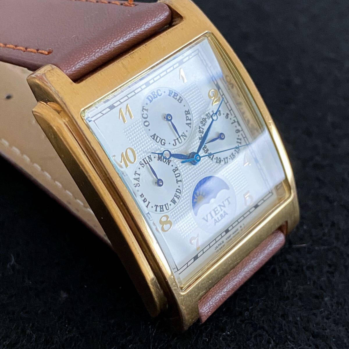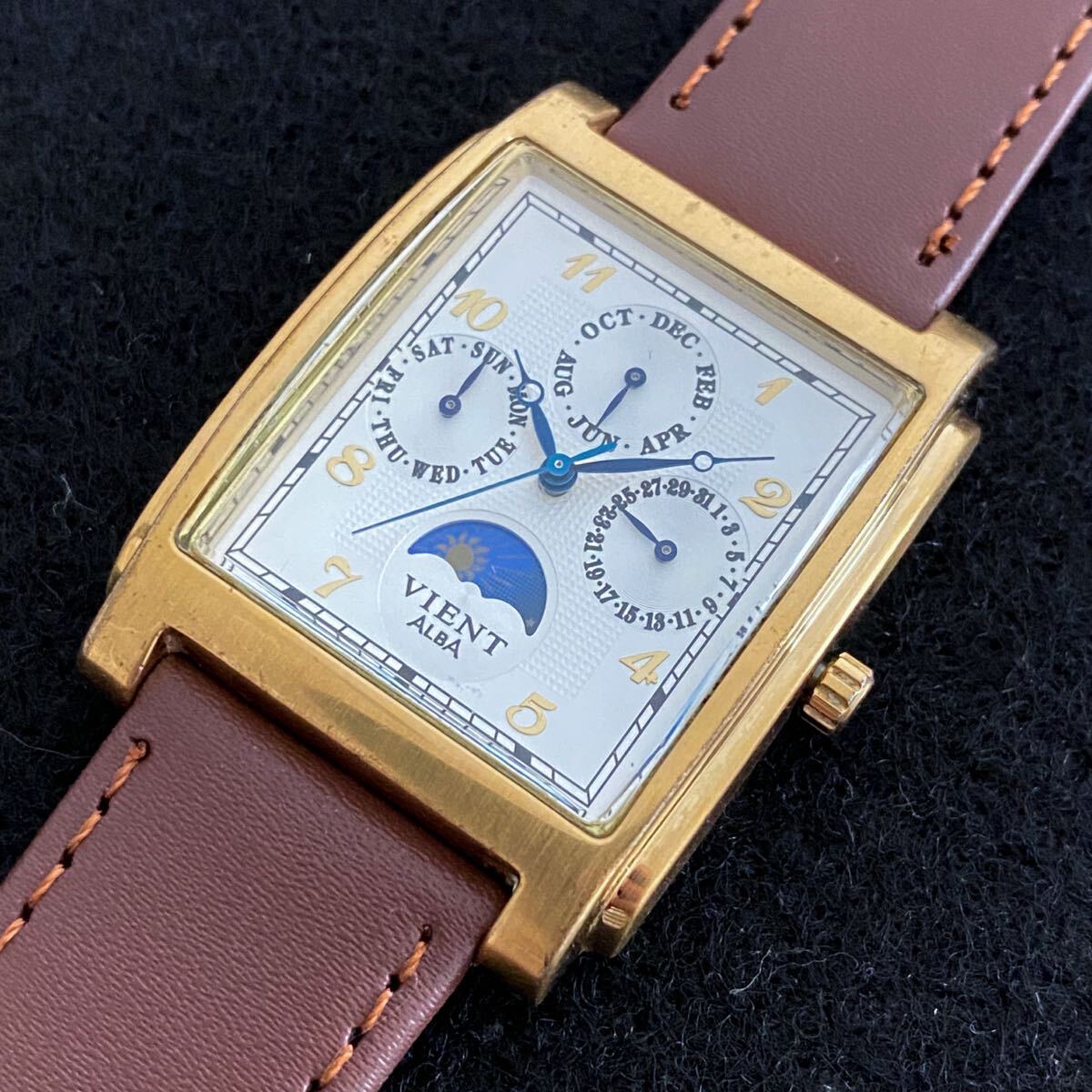 リューズ操作にて月と日にちを変更、リューズの送りで曜日変更となります。電池交換を済ませ、問題なく稼働しております。風防にガリ傷はなく綺麗です。ケースは経年により擦れ、メッキの薄れが一部御座います。