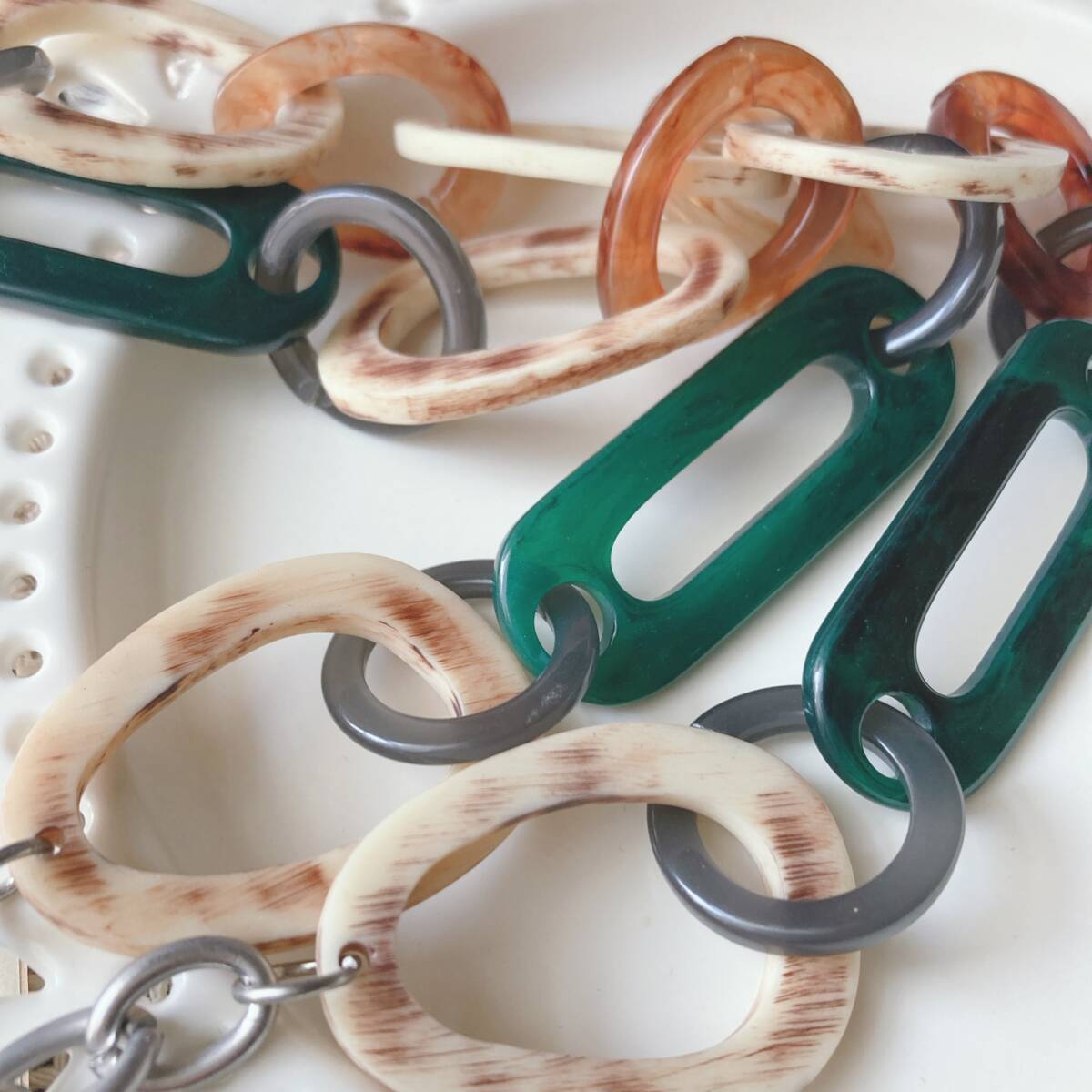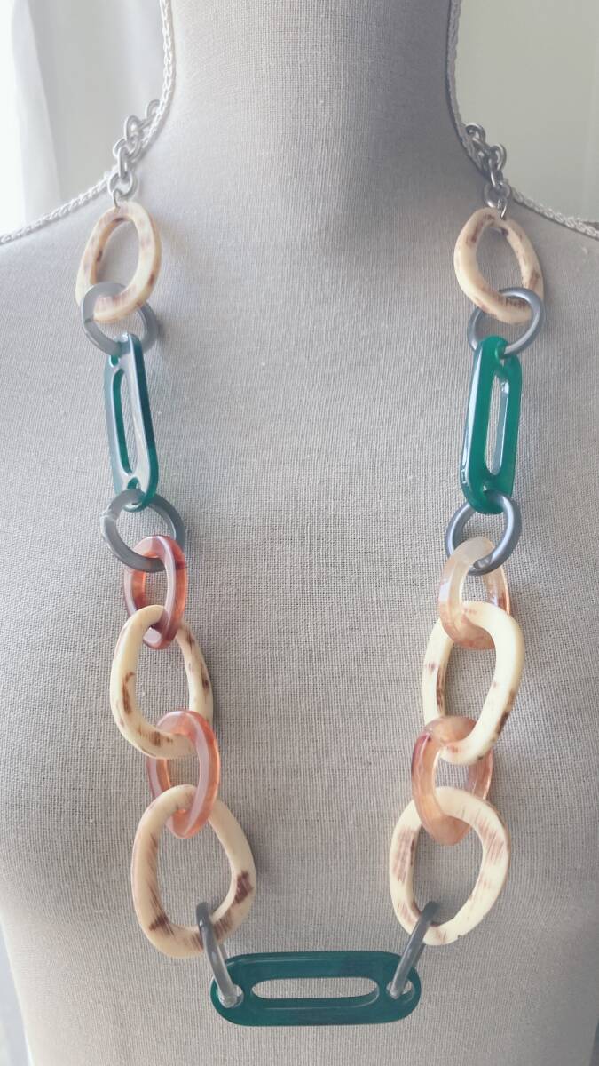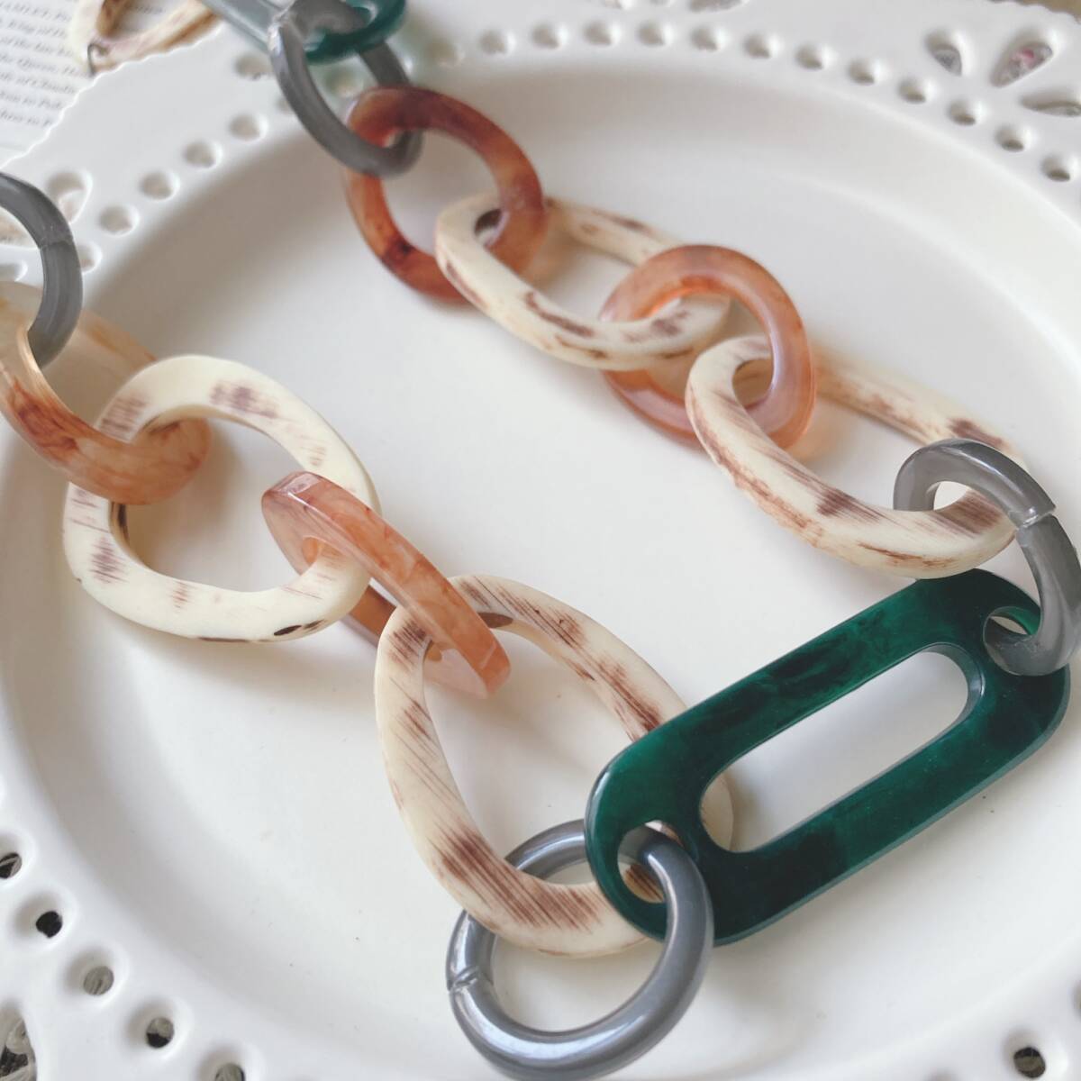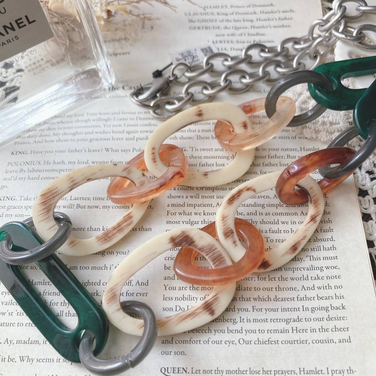 ネックレス ロング ミックスチェーン 水牛風 べっこう シルバー 未使用☆vintage jewelry accessoriesR0431
