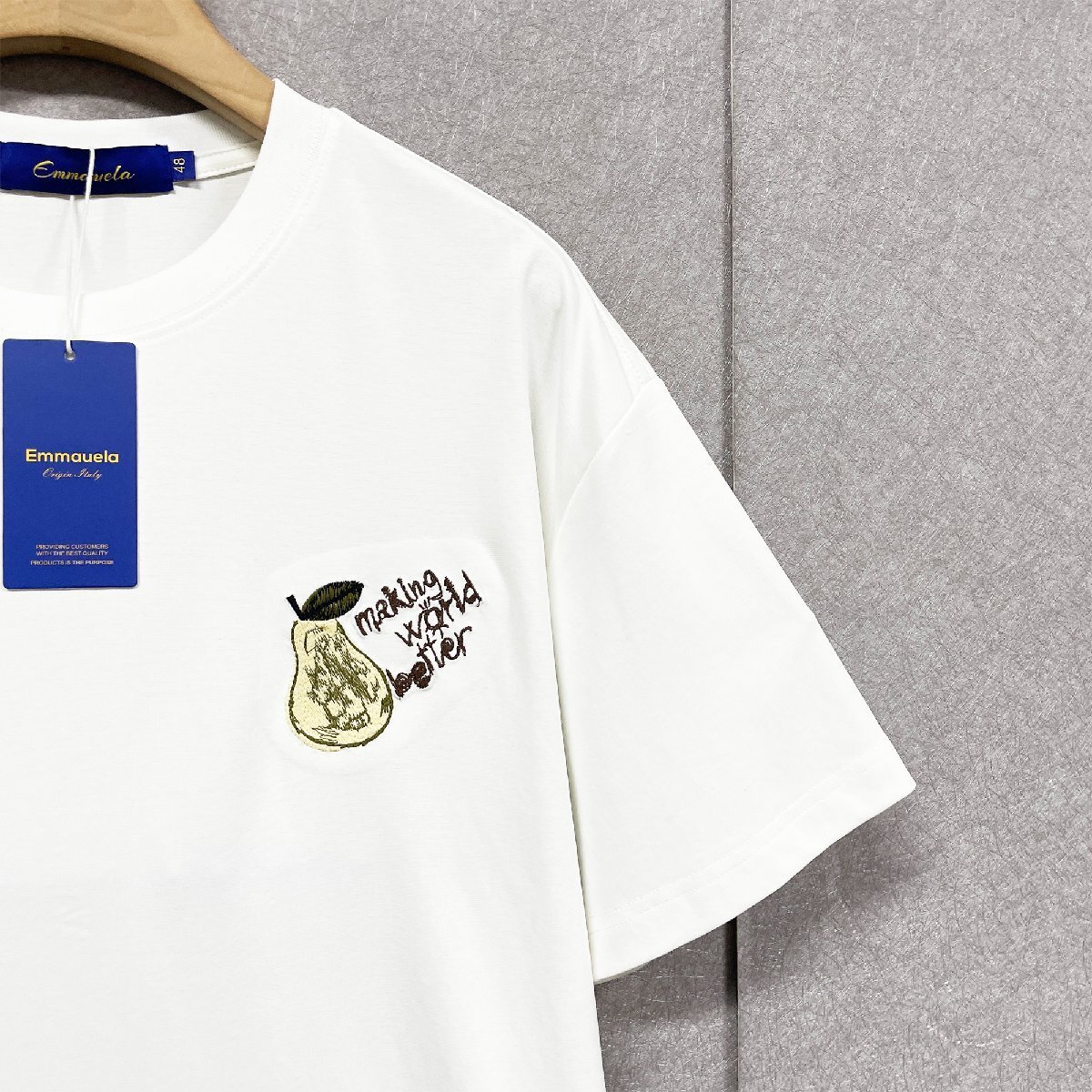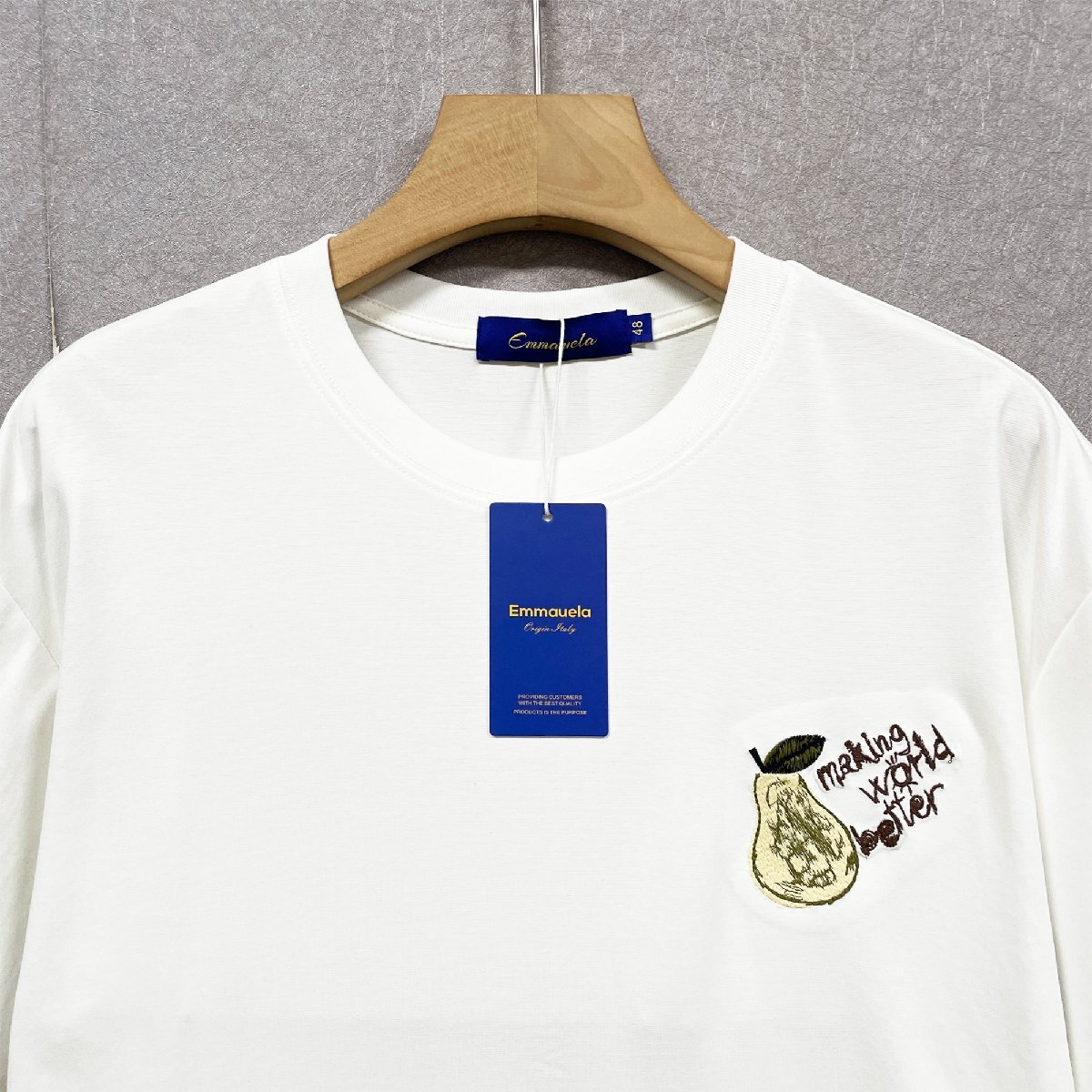 人気・半袖Tシャツ 定価2万◆Emmauela・イタリア・ミラノ発◆綿混 ソフト 吸汗 通気 洋ナシ柄 刺繍 シンプル トップス メンズ 春夏 2XL/52