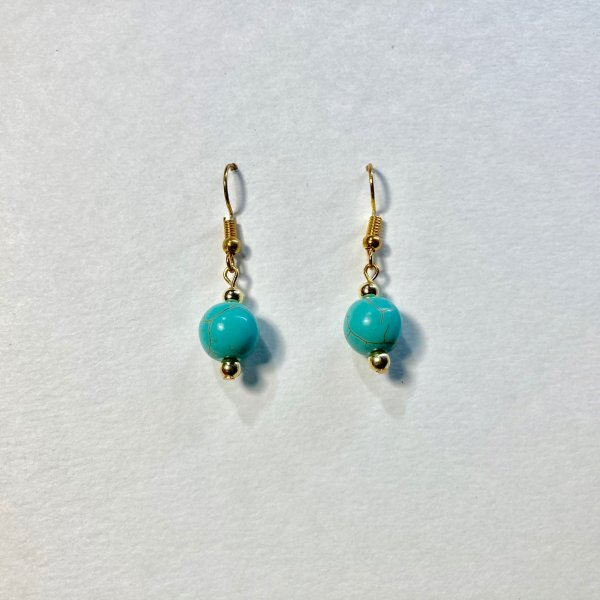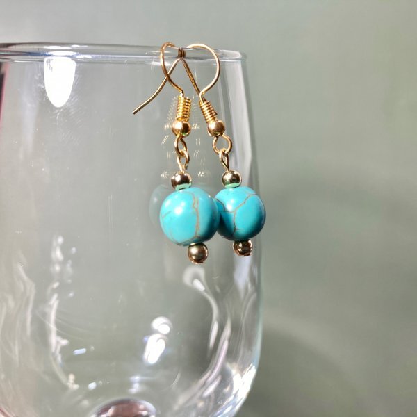 ターコイズ ピアス 一粒フックピアス 10mm (ゴールド) イヤリング、樹脂フック変更可 樹脂ピアス シンプル パワーストーン #2