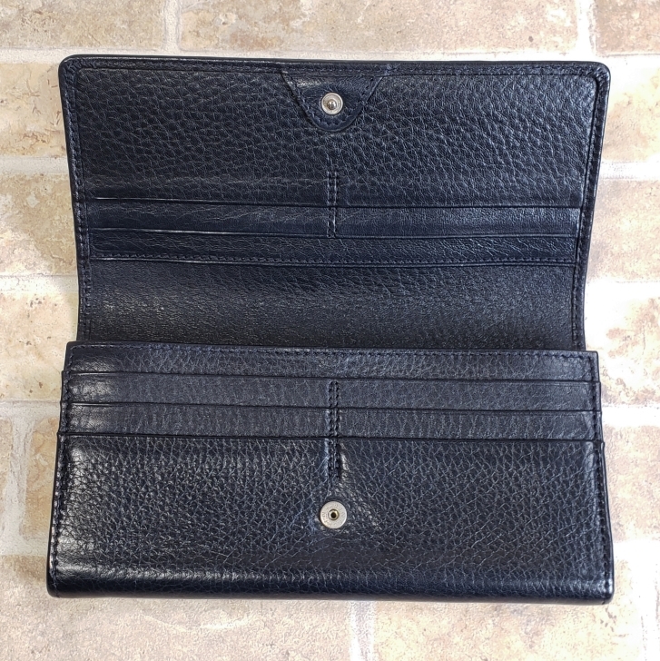 | 商品説明 | ・ダークネイビーカラーの 長財布です。 ユニセックスで使えるデザインになります。 ・カラー ブラックに近いダークネイビー系(画像参照) ・素材 レザー(本革) ・製造国 イタリア製 ・付属品 なし ・サイズ 縦幅 約10.0cm(中央部) 横幅 約19.0cm マチ 約1.5cm(最大幅) ・収納 外装 背面ポケット×1 内装 2室 カード室×14 フリーポケット×2 ジッパーポケット×1 ・コンディション 外装背面中央付近に2か所5mm程度の線状の圧迫痕があります。(画像参照) ジッパーポケット内に使用感があります。(画像参照) その他使用感が少なく、まだまだご愛用いただける良いコンディションです。(画像参照) ※個人保管商品ですので、店舗コンディションをお求めの方はご入札をお控えください。ご理解の上入札お願いいたします。 |