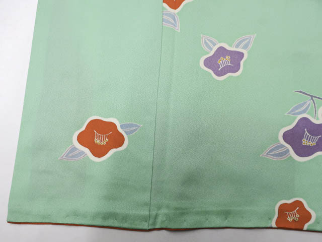 リサイクル商品のため、所々点しみと八掛けにしみがございますが着用可能なお品です。 地色は 薄緑 です。 1枚目の画像が近いお色かと思われます。 素材は正絹です。 |
