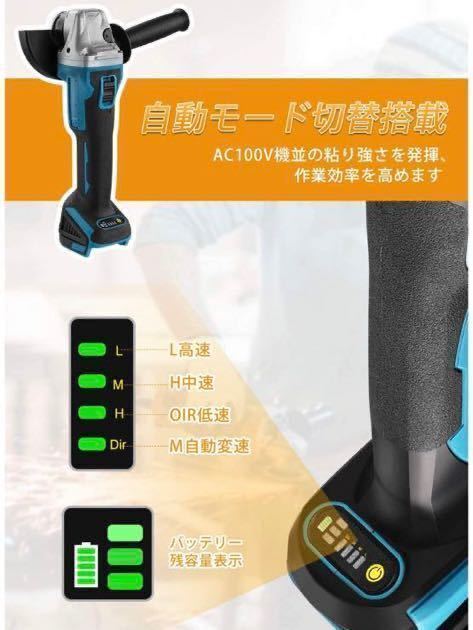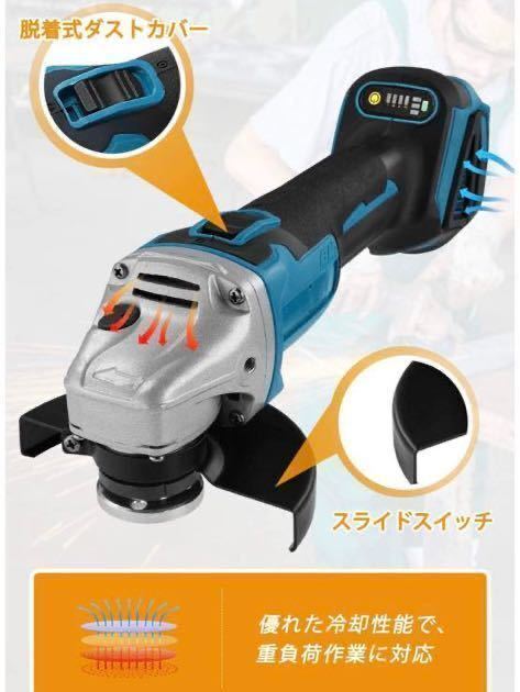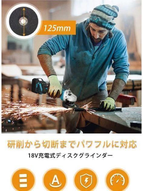 グラインダー 18V 充電式 ディスクグラインダー コードレス 125mm 電動ラインダー 3段階変速型 スライドスイッチ 金属の研磨・表面仕上・錆落とし・石材/木材切断 (本体のみ、バッテリー・充電器別売り)