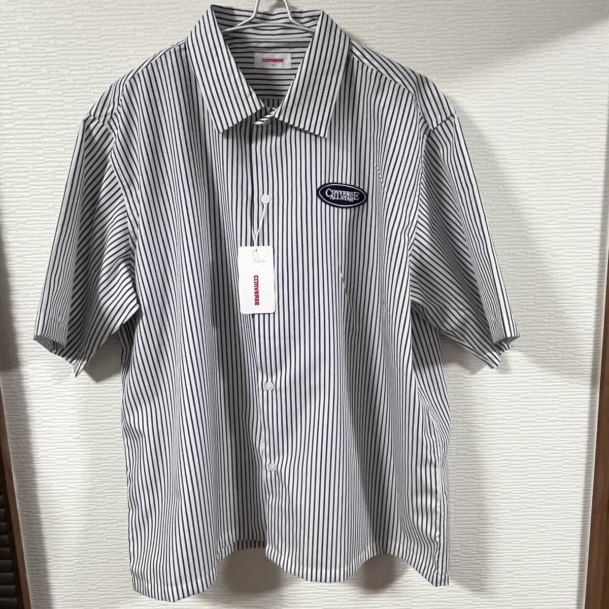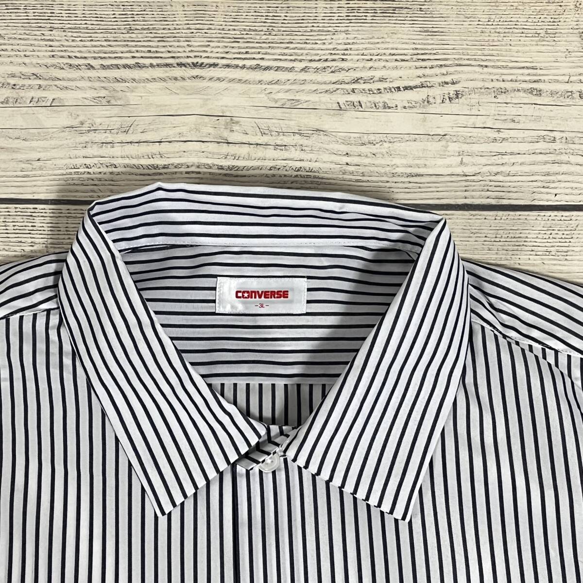 ★ CONVERSE (コンバース) ★ 半袖シャツ 3Lサイズ ブロード ストライプシャツ さわやか ロゴワッペン 大きめサイズ (タグ付き新品未使用)