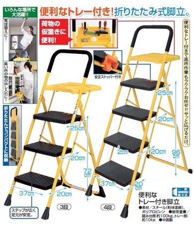 即決可@新品便利なトレー付き脚立3段 | ||||||||||||