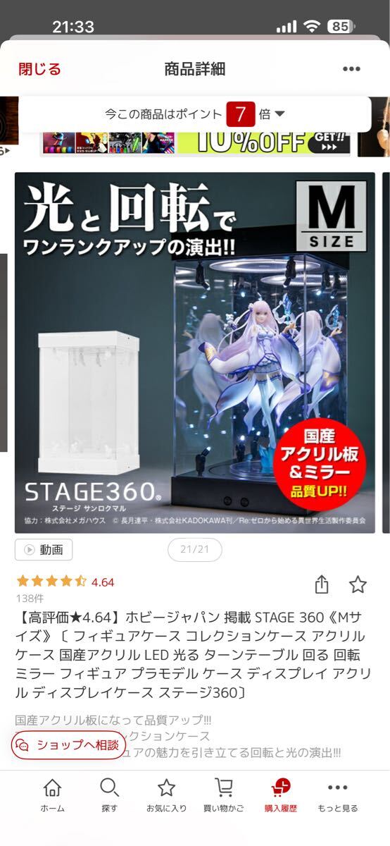 今年、楽天市場にて新品で購入しました。上面、下面それぞれLEDが点灯し、ターンテーブルも稼働します。発送はゆうパックにて承ります。