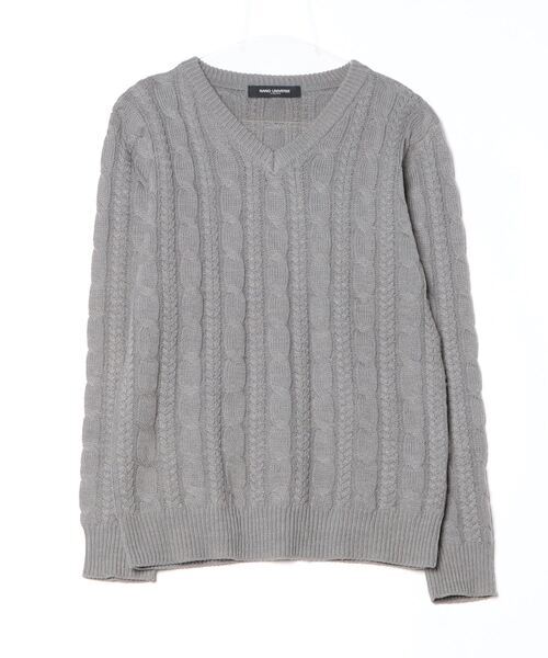 「NANO universe」 刺繍Vネックニット S グレー メンズ