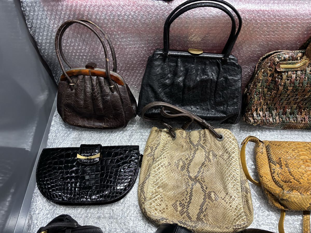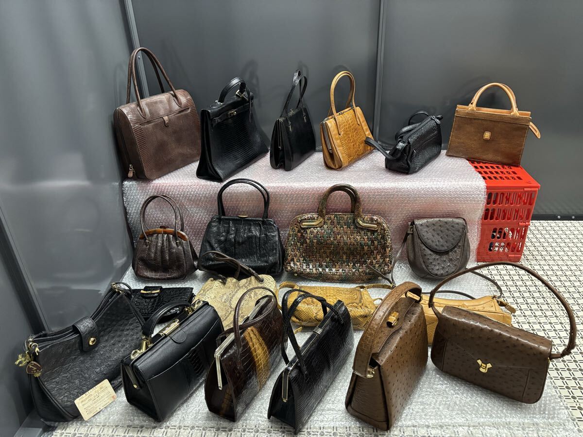 1円〜 エキゾチックレザー 20点 バッグまとめ JRA クロコダイル オーストリッチ ワニ柄 ヘビ革 本革 レザー ハンドバッグ ショルダーバッグ 等 フォーマル パーティー 着物 山 大量 同梱不可